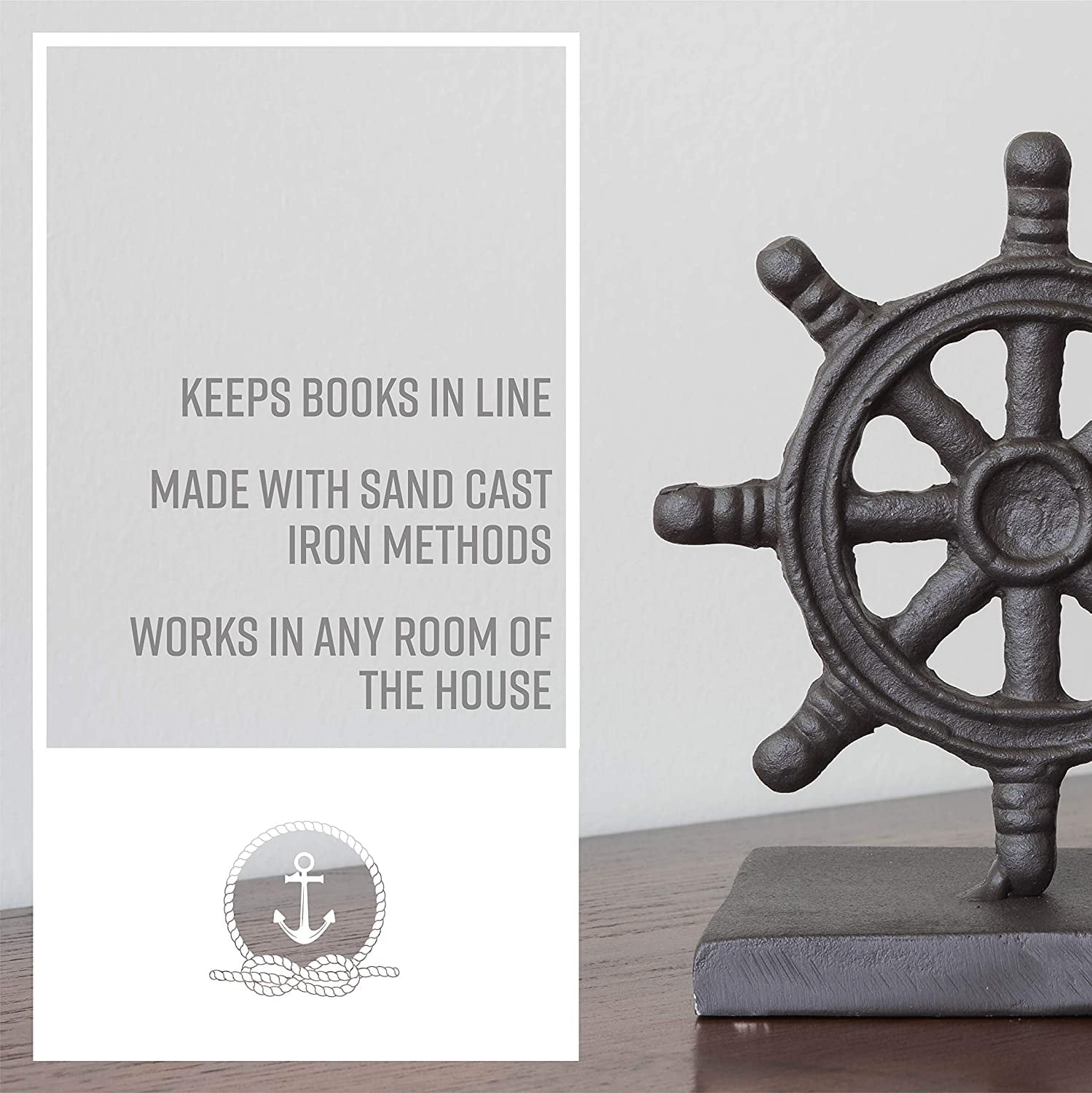 Danya B. ZI08303 Nautical/Coastal Home Decor – 2-Piece Metal Bookend Set with Anchor and Captain’s Wheel