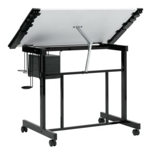 Deluxe Mobile Craft Station with Storage and Angle Adjustable Drawing Top Black/White