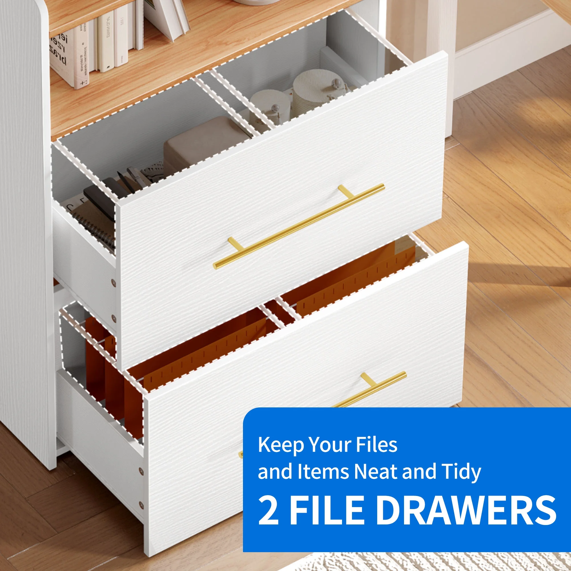 Dextrus 2-Drawer Lateral File Cabinet for Home Office , Large Filing Cabinet for Letter A4-Sized Files, Office Storage Organizer , White