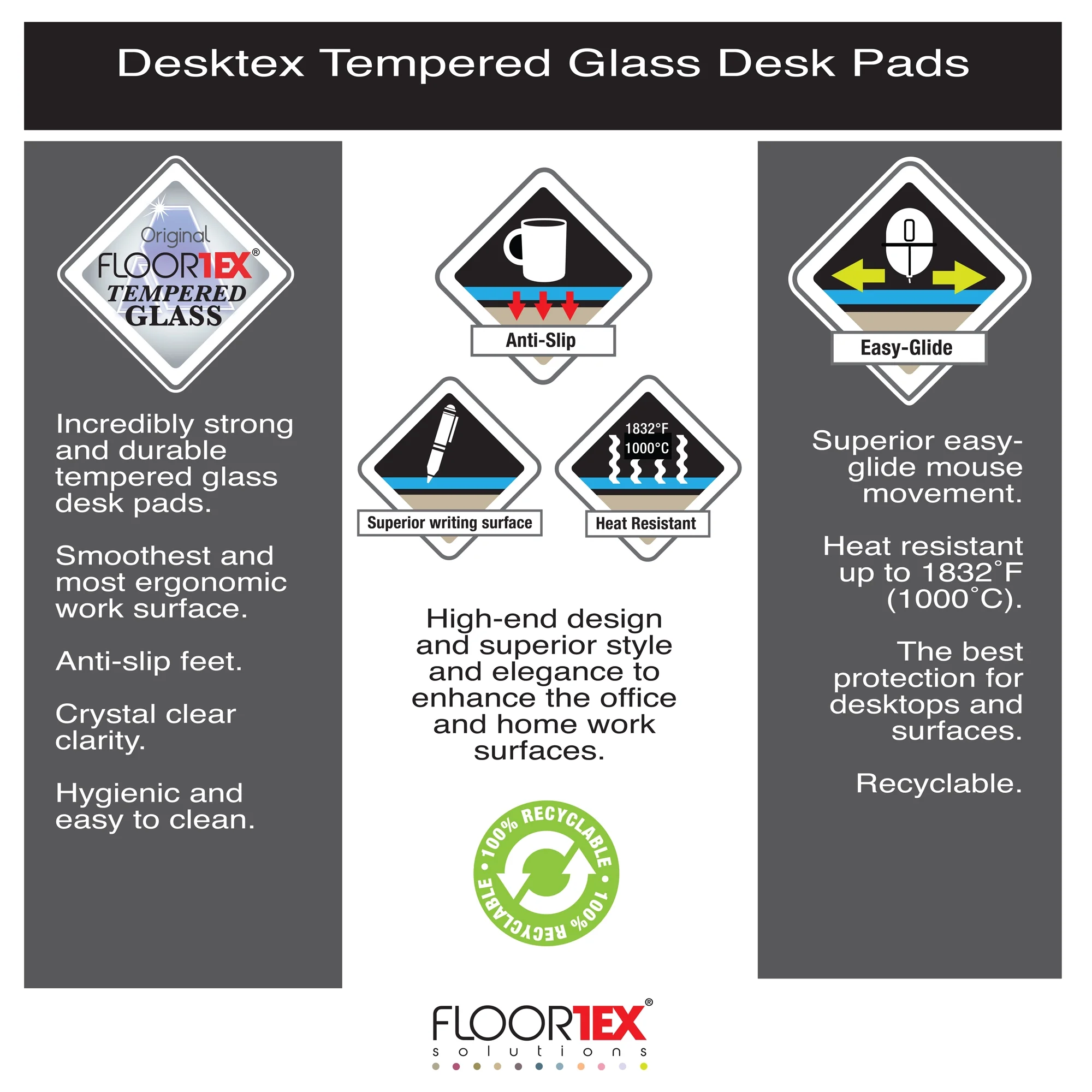 Desktex® Glass Desk Pad – 19″ x 24″