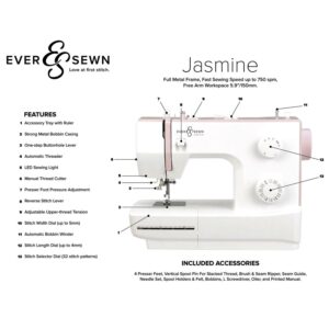 EverSewn Jasmine 32 Stitch Mechanical Sewing and Quilting Machine with 16 Accessories Included