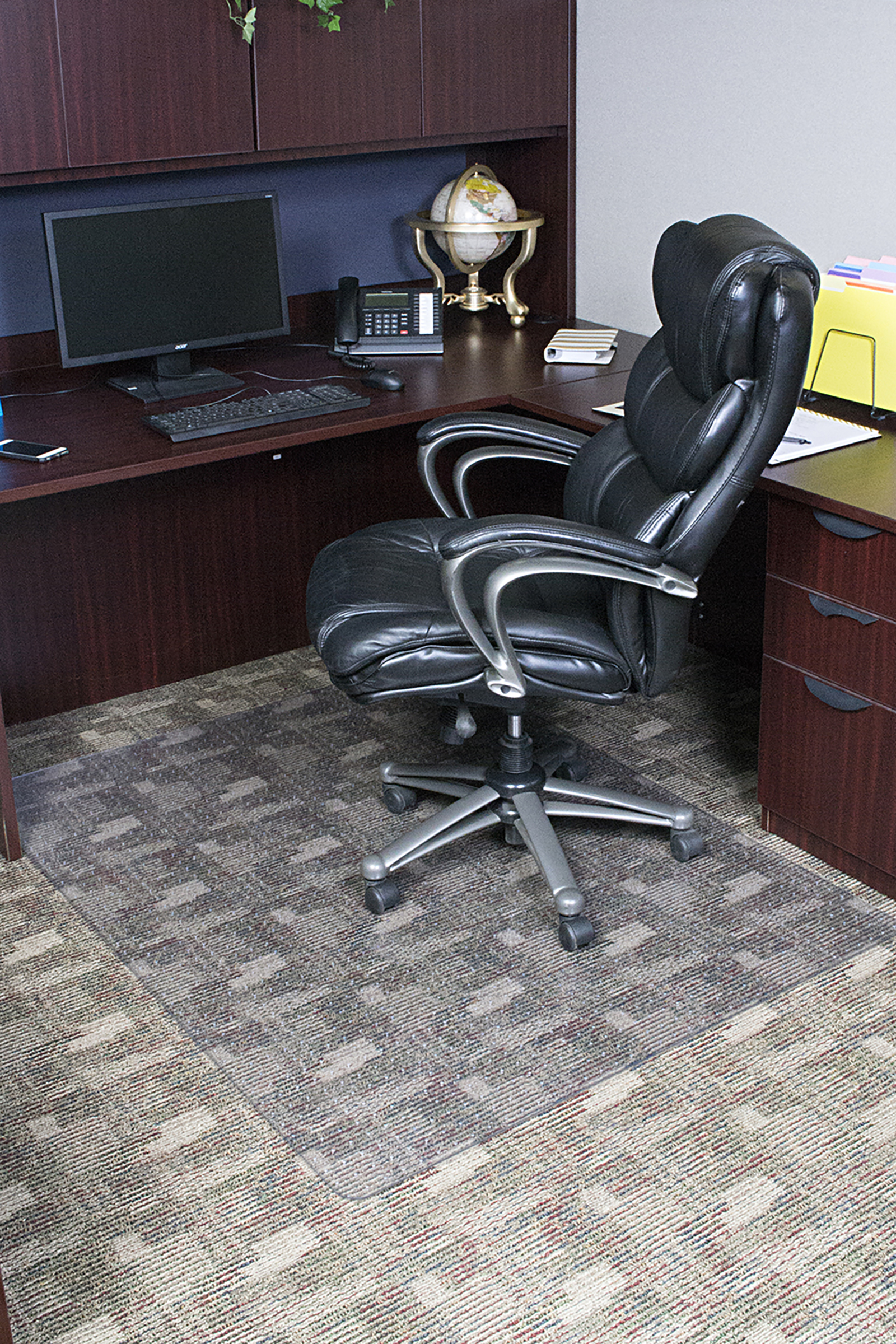 $55.88Original price was: $55.88.$40.67Current price is: $40.67.Evolve Modern Shape Chair Mats from Dimex are specifically designed for today?s 5-Star wheel base chairs. Evolve Chair Mats are the result of extensive research on how we move in our workspace relative to today?s office chair and contemporary furniture designs. The wide radius corners of the mat work in concert with the circular footprint of the 5-star wheel base to offer more efficient use of the rollable surface of the mat. Floor replacement and repair can be expensive. Protect your investment with a durable Evolve Chair Mat engineered to protect your floor from wear due to the wheels of your office chair rolling back and forth over time. Perfect for all low pile carpets with a 1/4 in. loop or less, including modular carpet tiles, woven rugs, and berber carpet. Not recommended for medium or high pile carpet, or hard floors. TIP: To determine the thickness of your carpet pile, place a penny on its edge down in the carpet pile (like measuring a tire tread). If Lincoln’s chin is above the carpet pile, your carpet is 1/4 in. or less.