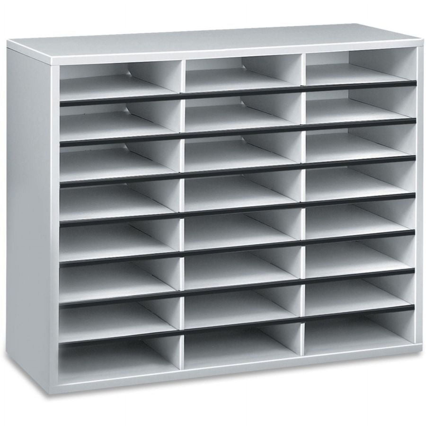 Fellowes® Literature Organizer, 24 Compartments, 23 7/16″H x 29 7/16″W x 11 7/8″D, Dove Gray