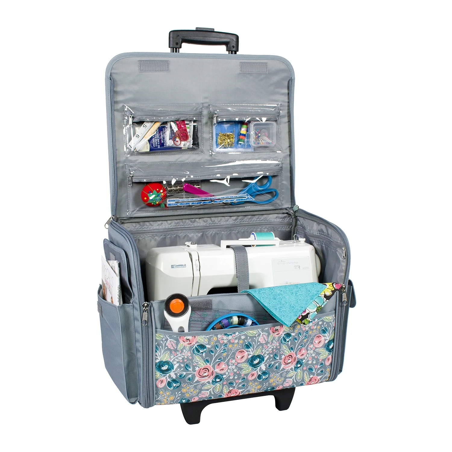 Everything Mary Floral Rolling Sewing Machine Tote, Craft Storage Bag with Wheels