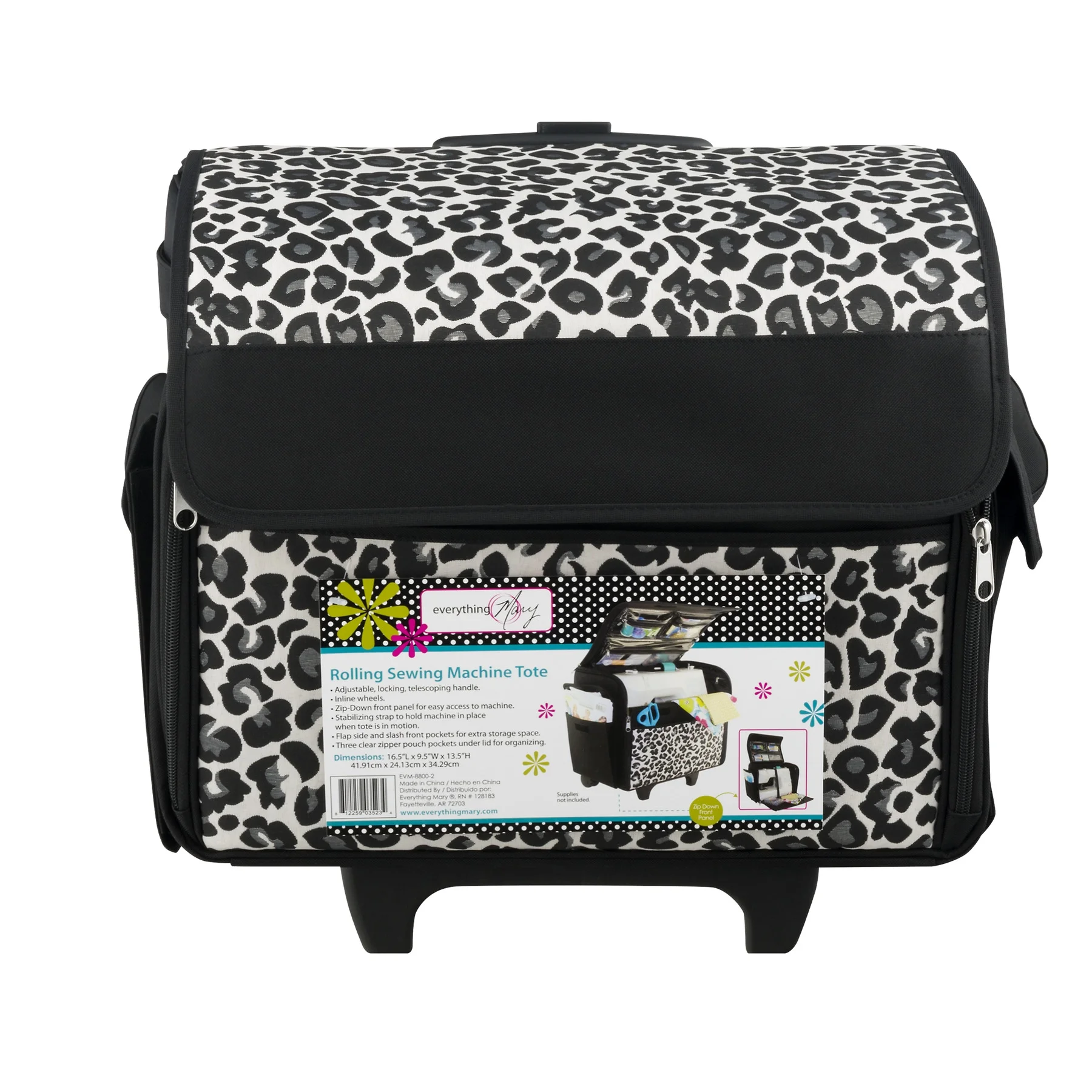 Everything Mary Collapsible Rolling Sewing Machine Tote, Cheetah Print – Sewing Machine Case Fits Most Standard Brother & Singer Sewing Machines, Sewing Bag with Wheels & Handle