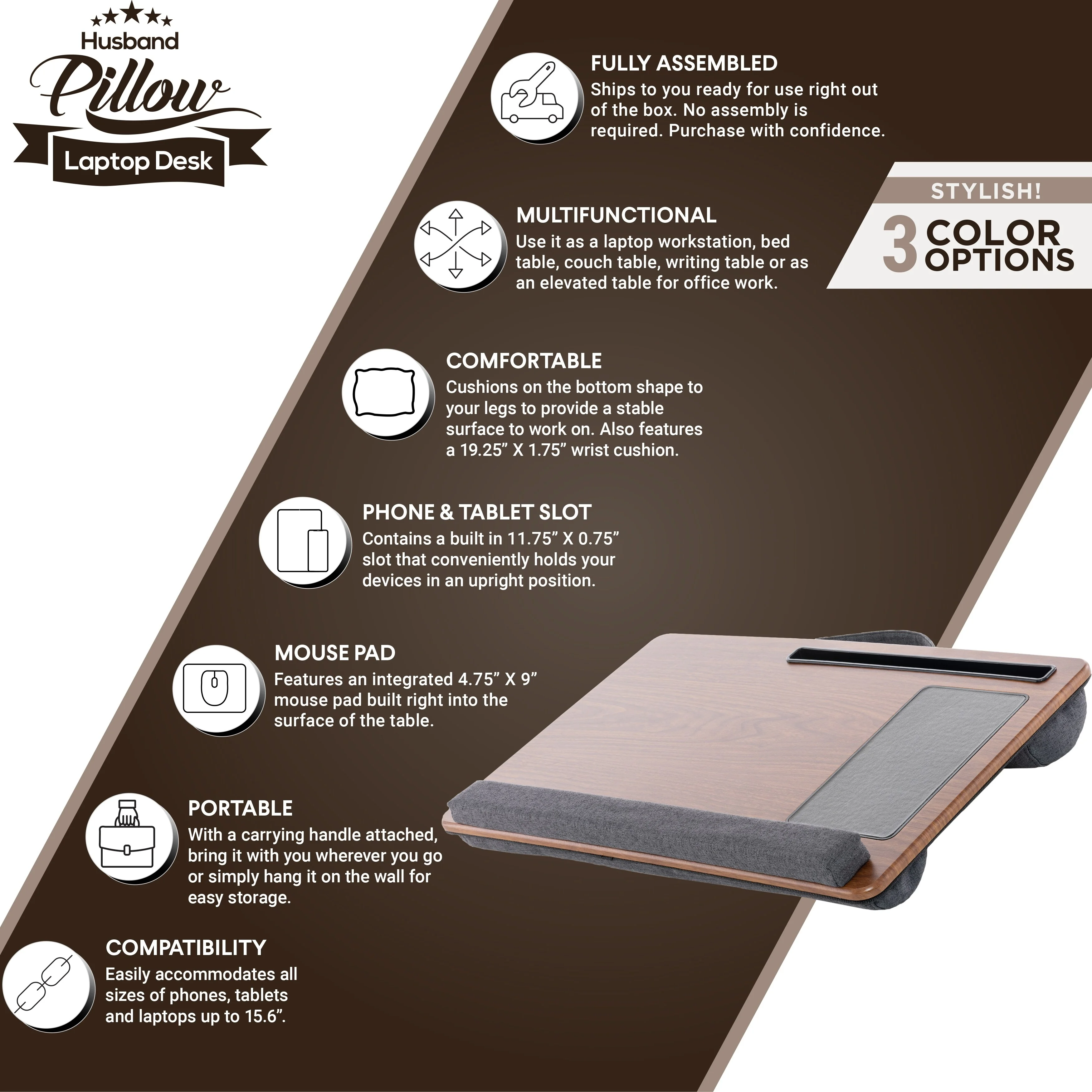 $42.96Husband Pillow – Bed Tray Desk, Adjustable Hard Wood PVC Desktop Lap Desk, Portable Laptop Table Stand Foldable Laptop Tray for Sofa Couch Floor (Large)