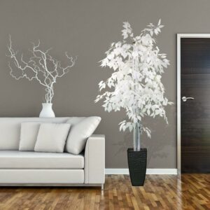 LCG Florals 72″ Tall Artificial Designer White Ficus Tree in Black Metal Pot