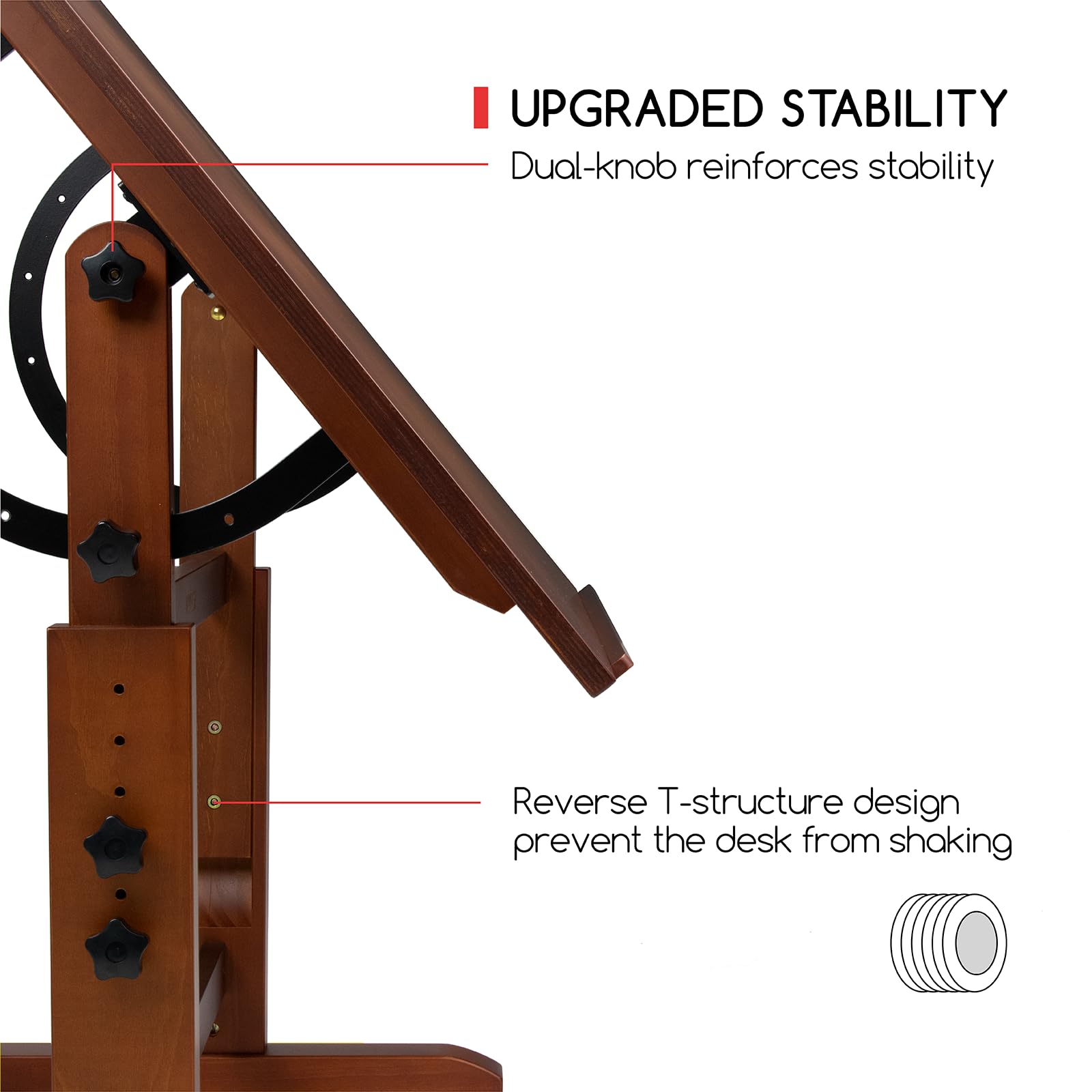 MEEDEN Vintage Wood Adjustable Drafting Table with T-square Ruler and Pencil Ledge, Brown