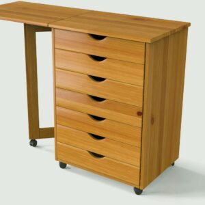 Adeptus Original Roll Cart, Solid Wood, 7 Drawer Gate Leg Roll Cart Desk, Extra Wide Drawers