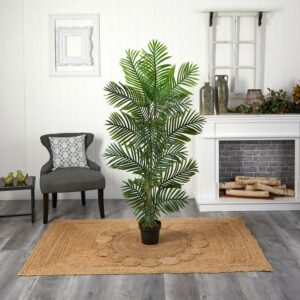 Nearly Natural 54″ Golden Cane Palm with Decorative Container in Green/Brown