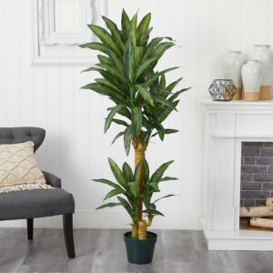 Nearly Natural 57″ Plastic and Polyester Flowering Yucca Artificial Plant, Green