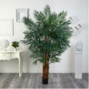 Nearly Natural 84″ Areca Palm Artificial Tree with Thin Leafy Fronds Green/Black