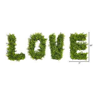 Nearly Natural Plastic 12″ LOVE Boxwood Artificial Plant Wall Decoration, Green
