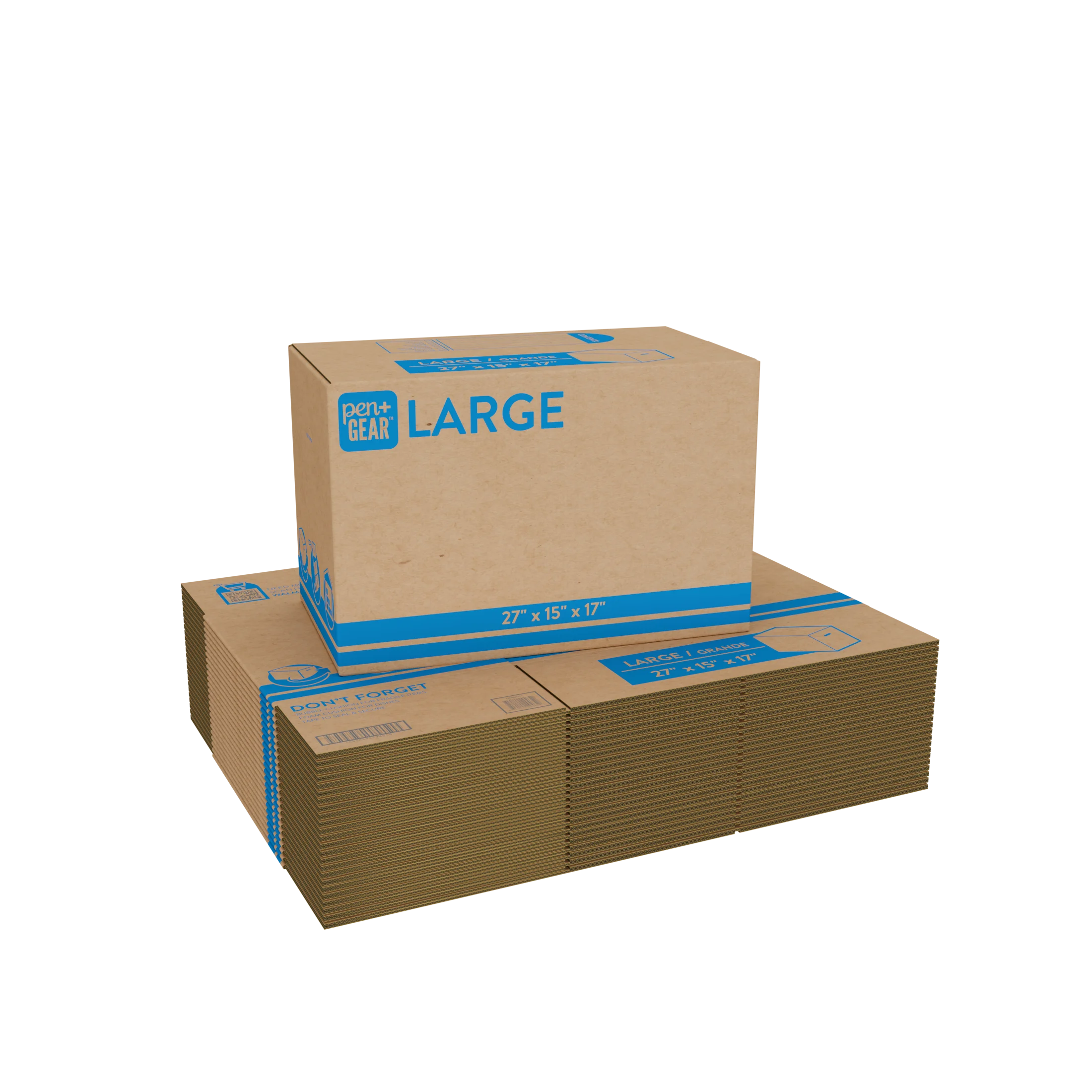$61.55This Pen+Gear extra large box is perfect for moving or storing large or oversized items as well as some larger and odd shaped items. This box can also be used to pack out-of-season clothing or decorations for storage. The durable construction of this box keeps items safe during storage or transport. It is easy to assemble with packaging tape. This box is made from 100% recycled paper, and is also available in an extra strength option for heavier items.