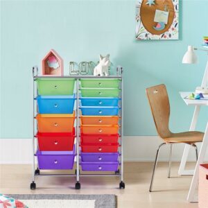 Renwick 15 Drawer Rolling Storage Mobile Storage Trolley Home Office Organizer, Multi-color