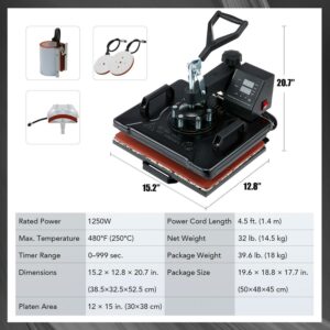 Preenex Growthrill 5 in 1 12″x15″ Heat Press Machine with 360 Degree Swivel