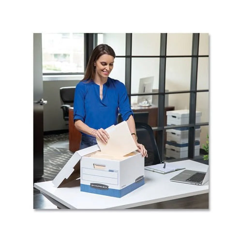 $104.03Original price was: $104.03.$84.84Current price is: $84.84.Heavy-duty, triple-end, double-side, double-bottom construction stacks up stronger and withstands frequent handling. FastFold® quick and easy assembly. Reinforced tear-resistant handles make box comfortable to carry. Deep, locking, lift-off lid stays in place for secure file storage. Smooth rolled edges add strength and prevent paper cuts. Box Type: Stackable File Storage; Box Style: FastFold® Quick & Easy Assembly; Strength: Heavy-Duty; File Size Format: Letter/Legal.