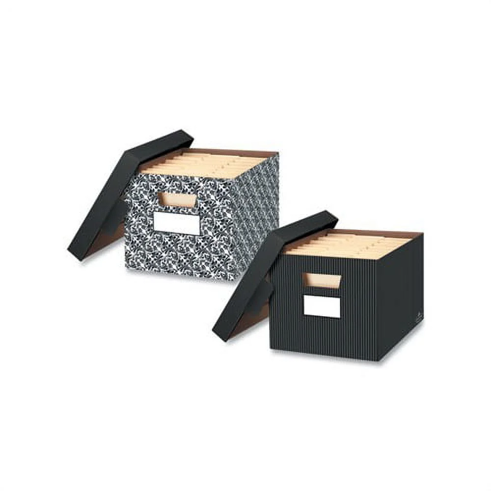 STOR/FILE Decorative Medium-Duty Storage Box Letter/Legal Files, 12.5″ x 16.25″ x 10.25″, Black/Gray Pinstripe Design, 4/CT Stackable File Storage