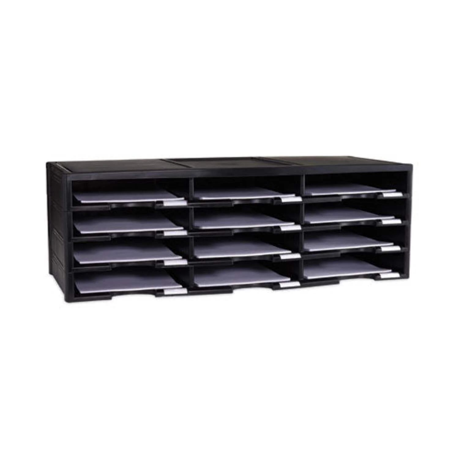 $97.99Original price was: $97.99.$49.53Current price is: $49.53.This organizer is made entirely of recycled plastic. Letter size documents or literature can be stored in one of the 12 9″ x 12″ x 2″ compartments. Each compartment features a convenient label holder to easily identify its contents. Holds over 60 lbs. Simple assembly requires no tools. Can be stacked up to 72 compartments high.