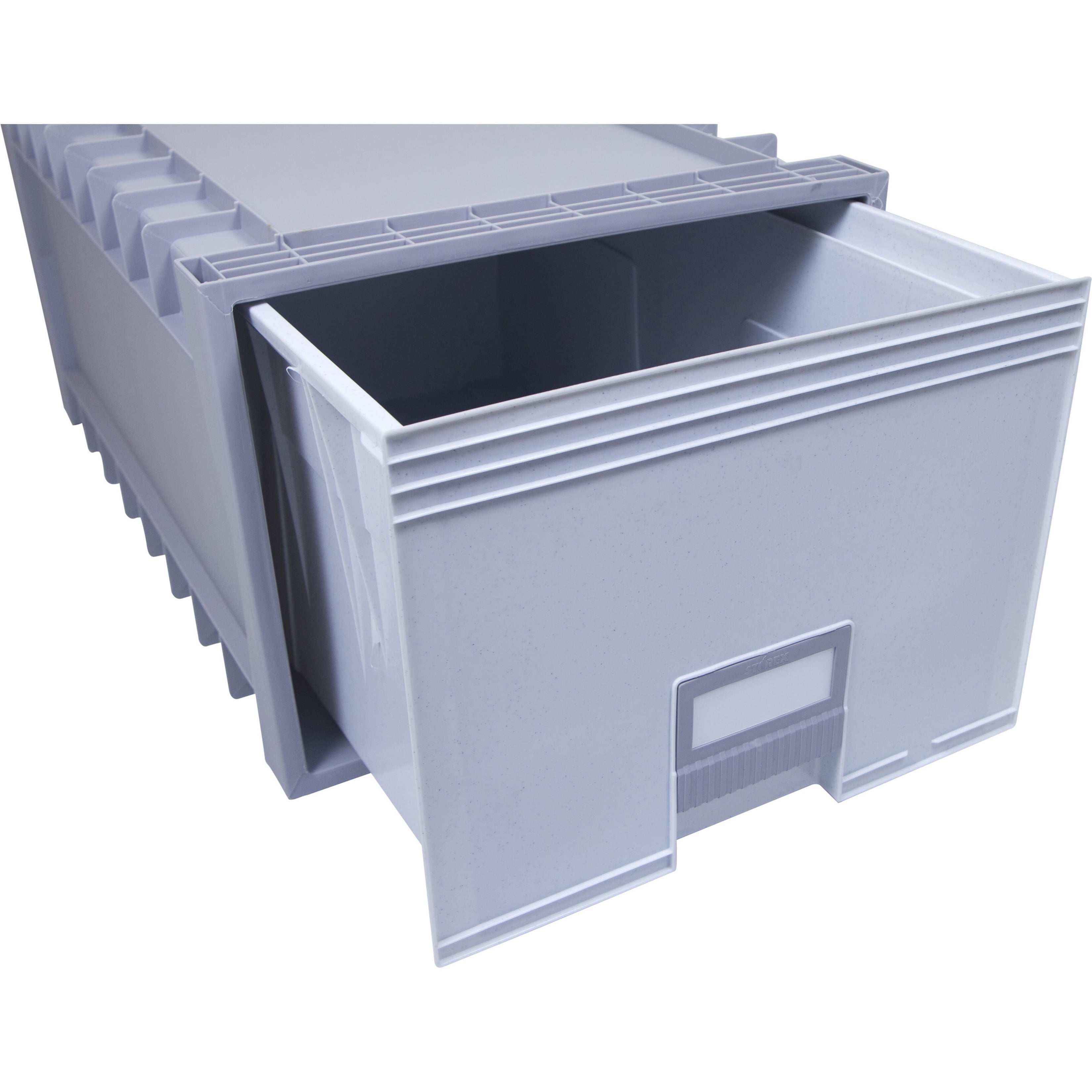 $40.68The Storex Archive Drawer is built to maximize storage in any office. Designed to hold letter-size hanging file folders and paper, each archival box measures 24 x 14-1/2 x 11-1/2 inches. The all-plastic construction is an affordable upgrade from cardboard bankers’ boxes, keeping your important documents safe from moisture and dust. Everything stays sorted and organized using the built-in label holders, making identifying the drawer contents simple. Each drawer is constructed with a reinforced handle and glides open on its integrated wheels. The innovative modular design allows you to stack up to 10 drawers high, for a customized storage solution unique to your needs, hardware included. Maximize your business document storage with the Storex Archive Drawer.