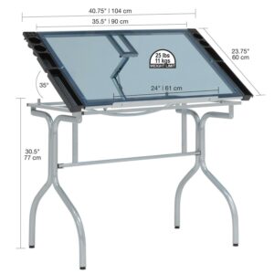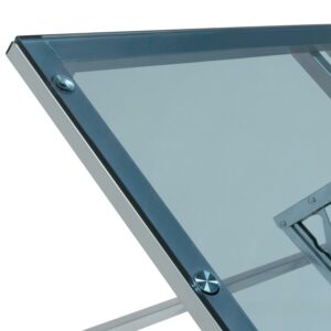 Studio Designs Blue Tempered Safety-Glass Adjustment Height Drafting Table, Silver