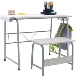 $131.09The Comet Center with Stool by Studio Designs provides a comfortable work space and keeps your craft and art supplies easily accessible. The table top angle adjusts up to 40 degrees and includes a pencil ledge that slides up and locks into place when needed. The set also features three adjacent storage drawers, a wide shelf under the table top and a padded stool. The durable heavy-gauge steel construction includes six floor levelers for stability.