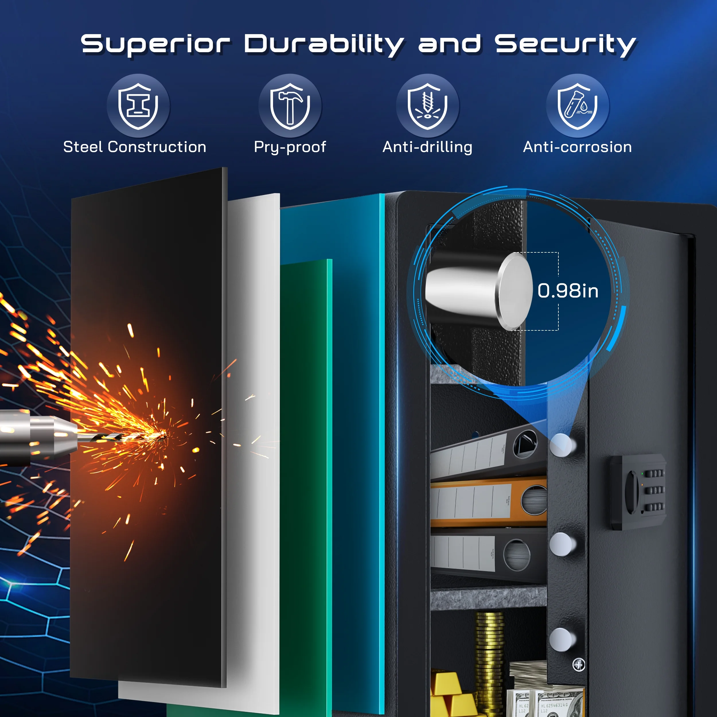 TELAM 4.0 Cuft Safe Box, Home Safe with Fireproof Waterproof Bag, Anti-Theft Digital Security Lock Box with Smart Alert System, Personal Document Safes