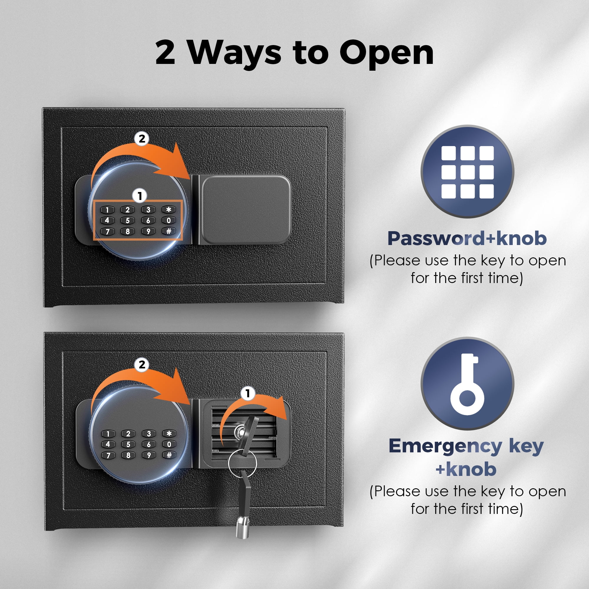 $163.39Original price was: $163.39.$49.88Current price is: $49.88.TELAM 0.65 Cu. ft Fireproof Safe with Digital Keypad Lock and Fireproof Bag, Small Safe Box LCD Screen Digital Cabinet Safes for Home Office Cash Jewelry File Black The design concept of this double lock safe comes from the protection of confidential documents or important property. For example, in the office, A and B jointly keep a confidential document, and this important document requires that only A and B be present to view it. According to this demand, we have developed a dual-key lock. The unlocking mechanism is set so that the master key and emergency key are used to unlock at the same time, and the keys can be distributed to different two people for safekeeping Of course, if you don’t want to use the dual key unlock function, you can also use the key and combination to unlock the door of the safe directly. This dual-key unlocking mechanism has a wide range of applications and can be used in offices, banks, homes, hotels and other places. The material is strong and has a large capacity, which can be used to store important property such as cash, jewelry, documents, watches, and guns.