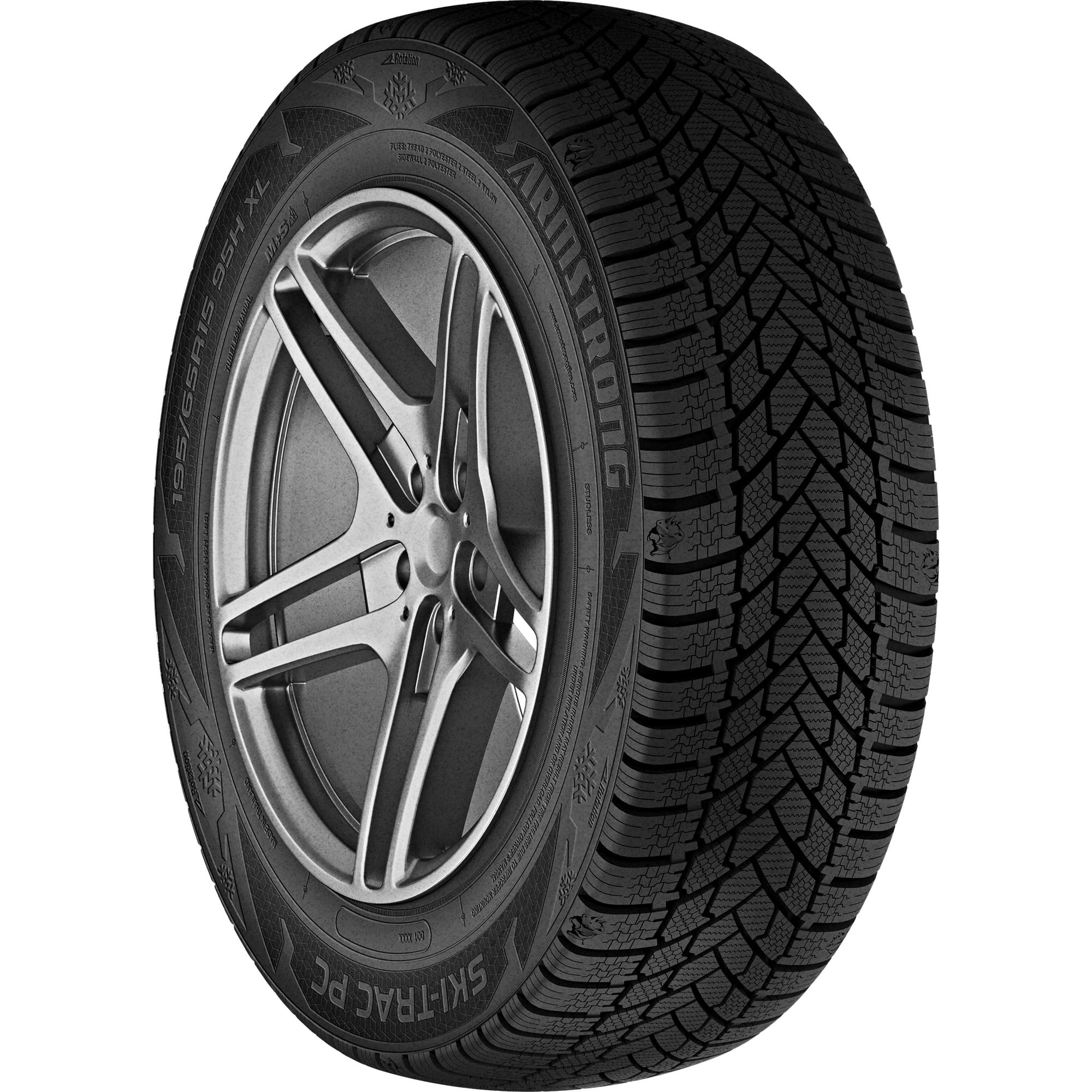 $61.86Armstrong SKI-Trac PC 215/60R16 99H XL OVERVIEW Armstrong’s SKI-Trac PC is a studless winter tire that’s designed for use on passenger cars and features a uni-direcitonal tread pattern that enhances traction and handling performance on icy, slushy, snowy, and frozen roads. Optimized 3D sipes bite into the road to improve handling while also helping to reduce braking distances, and the SKI-Trac PC’s four circumferential grooves drain water, slush, and snow out of the tread to reduce the risk of hydroplaning on slippery roads.