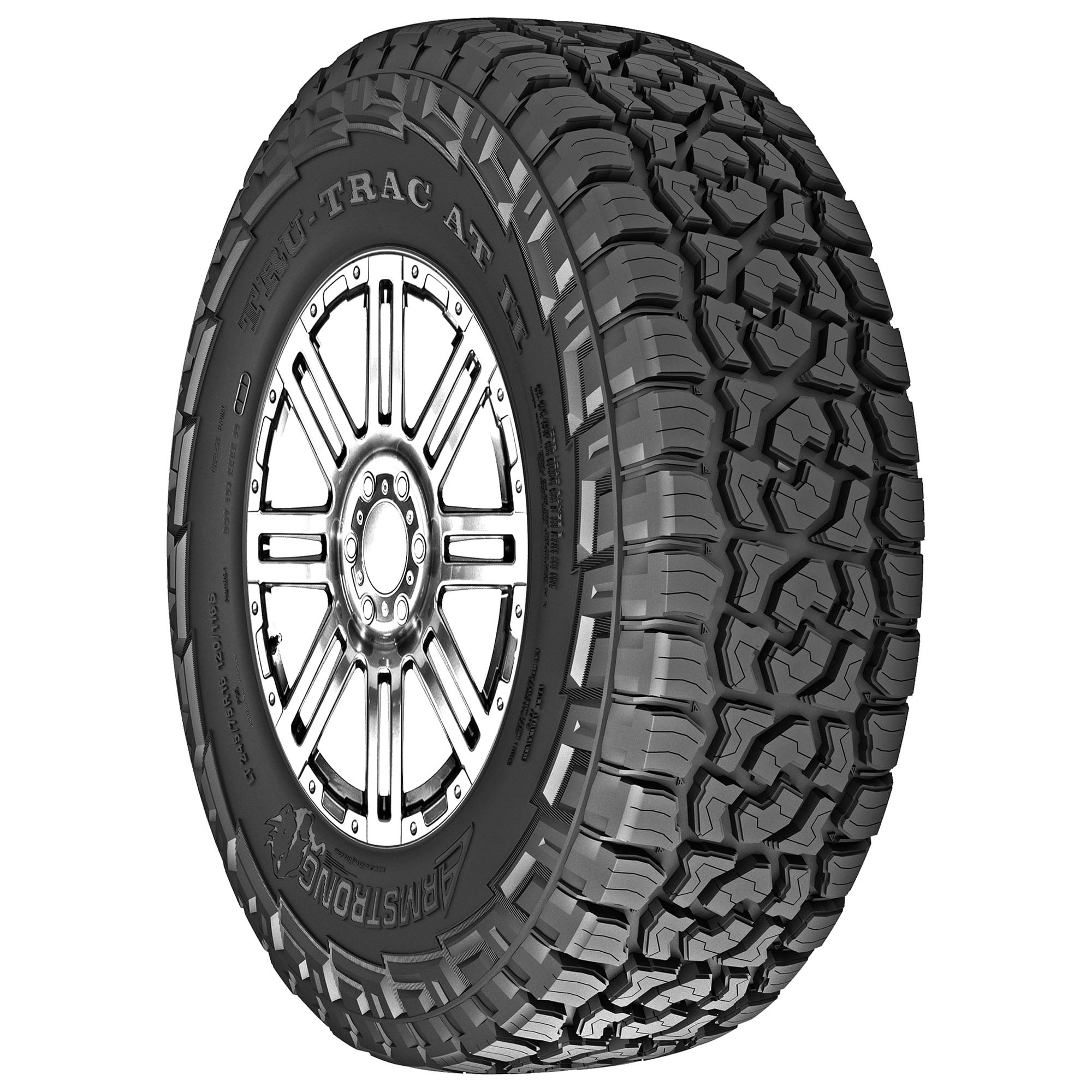 $118.39Armstrong Tru-Trac AT LT265/70R17 121/118S E OVERVIEW True to the Armstrong TRU-TRAC legacy, the Tru-Trac AT all terrain tire provides excellent performance on any road, and under tough road conditions delivers high-speed stability, greater steering response, and maximum comfort. The Tru-Trac AT’s design also reduces irregular wear and inhibits block wriggling.