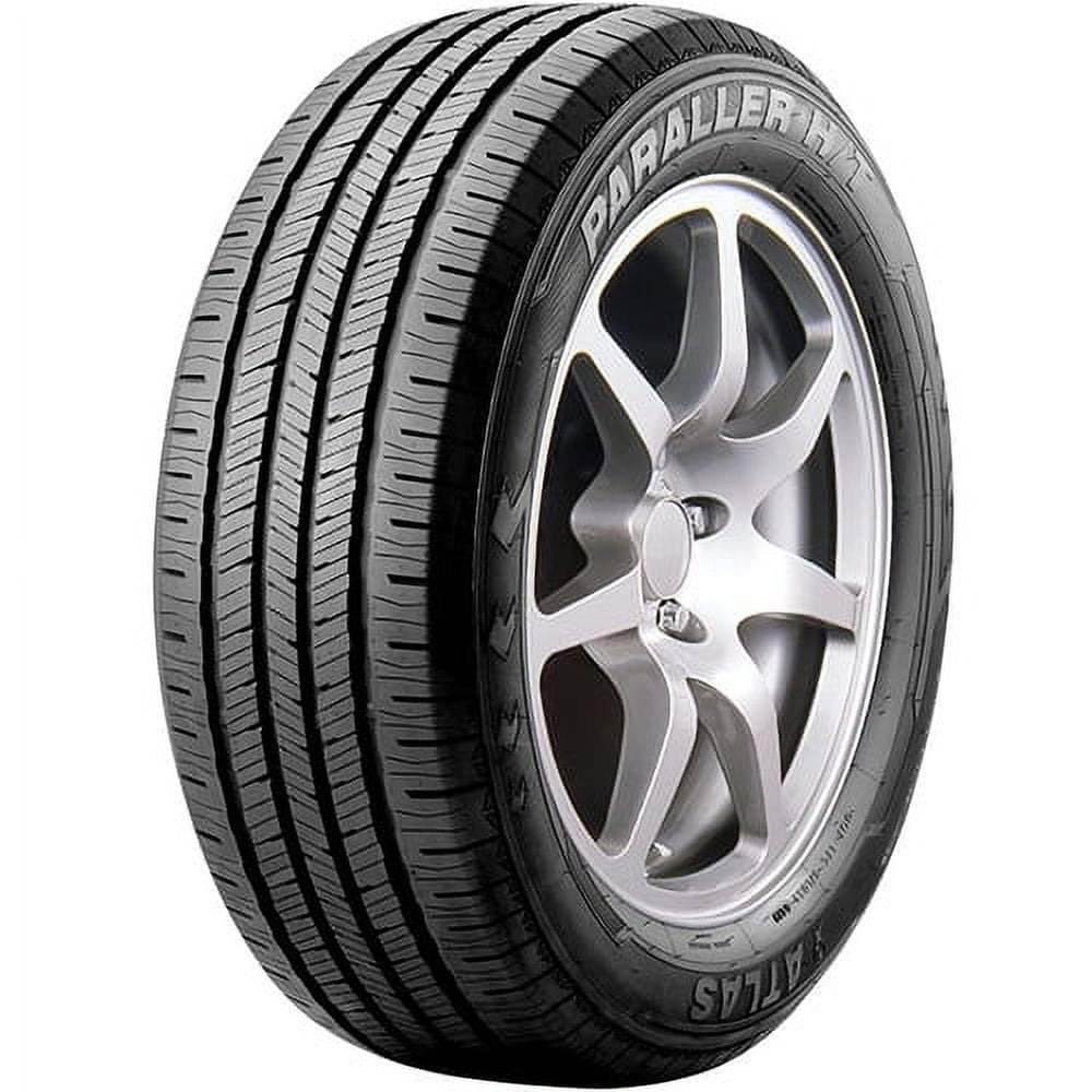 $90.37Atlas Tire Paraller H/T OVERVIEW The Atlas Tire Paraller H/T is a highway terrain, all season tire made for SUVs and light trucks. Atlas Tire offers a 50,000 mile treadwear warranty with this model. The tire improves the all season traction by using the durable compound and the detailed tread elements. They work together to enable the tire’s dry, wet and winter weather grip on the road surface. The compound keeps the rubber flexibility in versatile temperatures, upgrading the summer and winter weather performing ability. The siping and notch placement along the footprint improves the grip on the road surface with additional biting edges. The four wider circumferential grooves prevent hydroplaning by dispersing water and slush from the footprint, resulting in a safer wet weather performing ability. The ideal tread elements enhance the grip on the road surface in all weather conditions. The better road contact improves the steering responsiveness and the driving stability at all times. In other words, the tire promotes a quicker and more precise steering response to the driver’s commands, while the structure is secured against the driving pressure affecting the tire. The shoulder block placement and the siping pattern provide a higher number of biting edges to grip the road surface during maneuvering and cornering. The siping placement along the footprint allows the tire to create friction at the moment of braking, greatly shortening the braking distance and offering a better braking ability. The Paraller H/T boosts the durability as well. The strengthened internal structure keeps the ideal tire shape under the load and driving pressure, enabling the tire to boost the load carrying and withstanding ability. As the tire does not deform, it is able to upgrade the load capacity, which promotes a safer driving experience. Not all tire sizes are suitable for all vehicle types. Please refer to the item specifications for accurate information about vehicle type fitment for this particular size. Manufacturers recommend changing tires every 10 years. As long as tires are properly stored before they are sold, the year of their manufacture will not shorten their service life.
