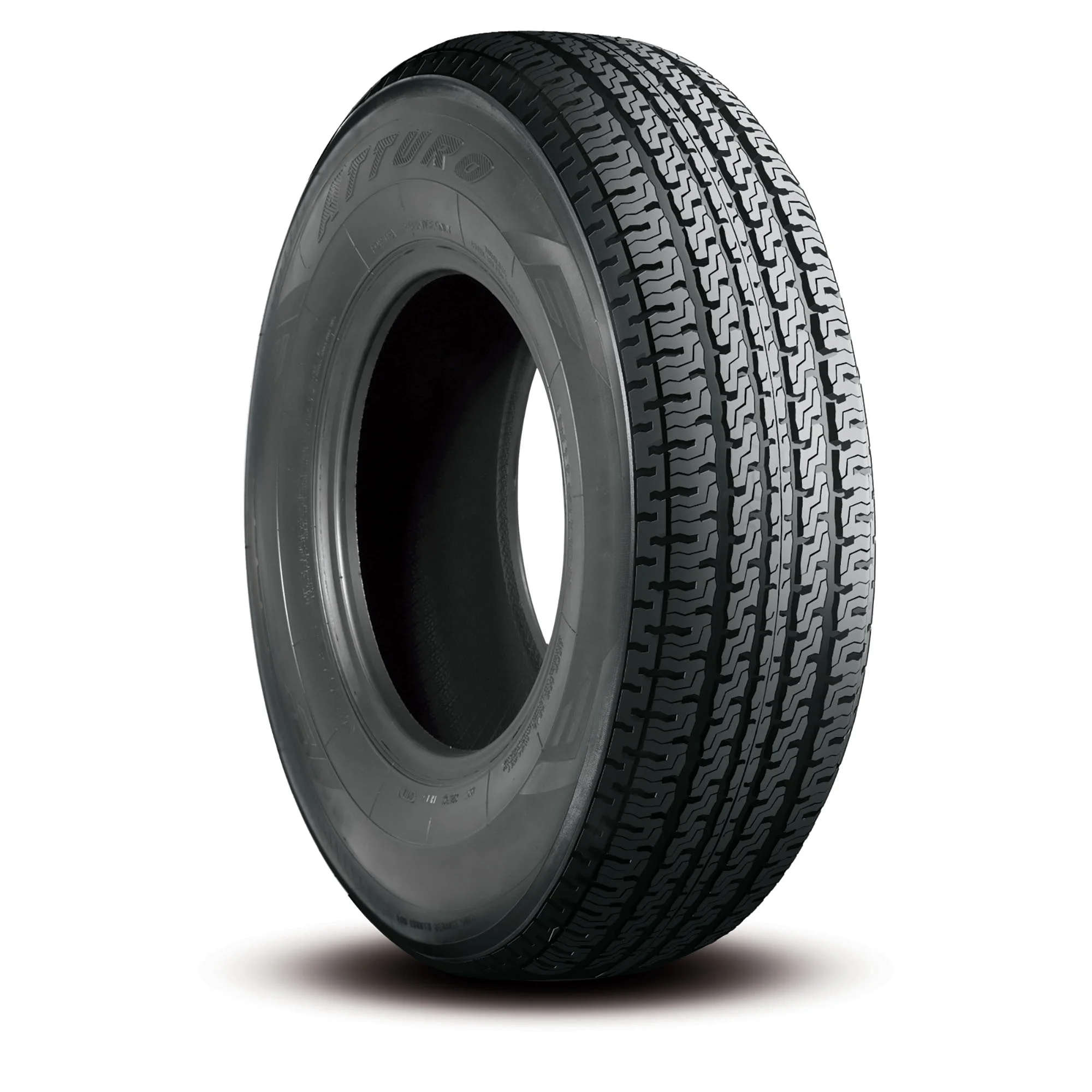 $81.69Atturo ST300 OVERVIEW The Atturo ST300 is a highway, all season tire created for trailers. This tire is NOT MEANT TO BE MOUNTED ON LIGHT TRUCKS, as its construction will not support the weight and performing style of such vehicles. It can ONLY BE MOUNTED ON TRAILERS. The model provides great all season traction. The ideal tread design, with the detailed siping pattern, and the all season compound work together to upgrade the dry, wet, and light winter performance. The durable compound elements and the detailed siping placement increase the tire’s surface traction to ensure a safe year-round drive. The compound elements optimize the rubber’s flexibility throughout the year, in various temperatures. The tread design’s siping placement enhances the number of biting edges that grip the road, which boosts the surface traction. The tread’s ideal groove placement avoids hydroplaning in wet-weather situations. The improved construction and the tread design make sure the model has superb towing stability. The stronger carcass and the upgraded sidewalls do not allow the model to flex on the highway. The ribbed design, with the many biting edges, firmly connects the tire with the road. This continual road contact doesn’t allow the model to sway during the performance, offering a better response to the steering axle’s commands. In this manner, the tire increases safety levels. Better structural durability is ensured with the tire’s exceptional load capacity. The strengthened structure and the durable compound upgrade the load capacity. The structure does not allow the tire to deform under load and driving pressure, while the tread manages to evenly distribute driving pressure along the tread area. This promotes the tire to improve its overall load durability, which enables the tire to securely carry and withstand larger loads. The result is a strong load capacity. The Atturo ST300 ensures a quiet performance. The footprint features a variable pitch pattern, which helps keep road noise low. This pattern generates a special sound frequency while the tires are in motion. As a result, the tire negates sound waves before they can reach the vehicle’s cabin and ruin the passengers’ driving enjoyment. Better comfort provides an enjoyable driving experience. Manufacturers recommend changing tires every 10 years. As long as tires are properly stored before they are sold, the year of their manufacture will not shorten their service life.