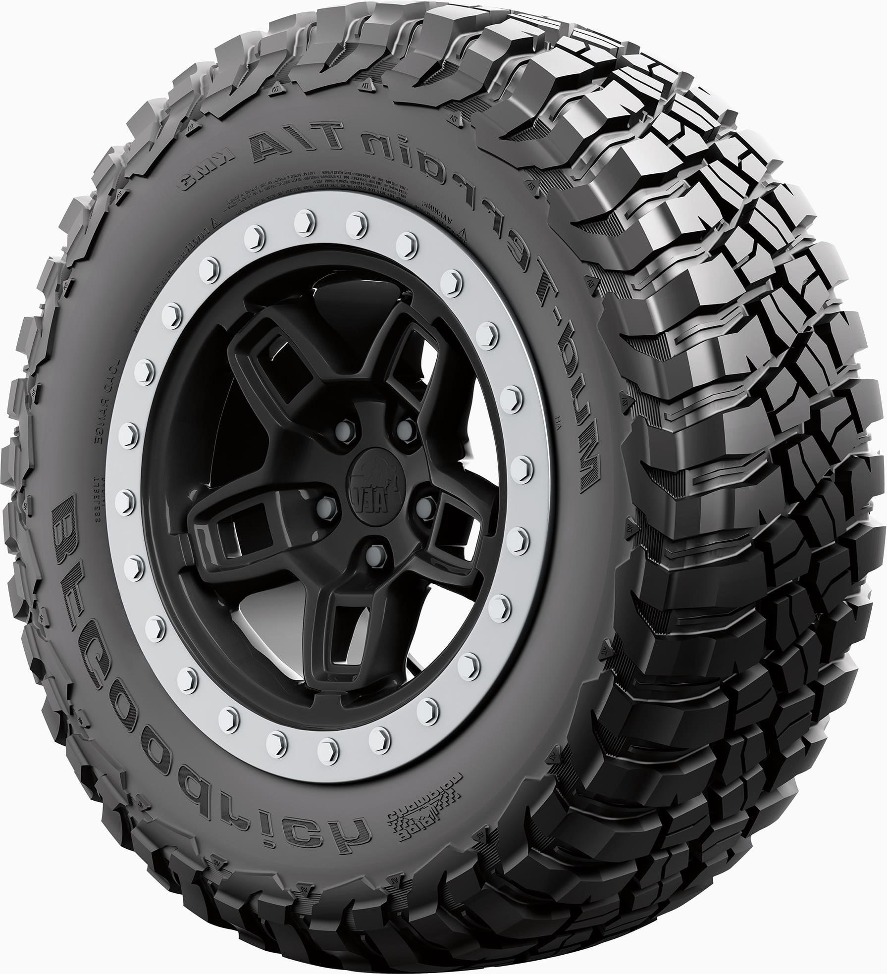 $293.25Bring on the unpaved road. The BFGoodrich Mud-Terrain T/A KM3 tire is must-have equipment for the serious off-road enthusiast, especially when conditions require extreme traction and toughness. Made to mud, built to climb and created to conquer, the BFGoodrich Mud-Terrain T/A KM3 tire was designed to power through mud and loose soil with ease thanks to its massive tread blocks that are uniquely engineered to deliver incredible grip from any angle of approach and Mud-Phobic Bars that release compacted mud for continued traction.