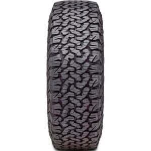 $255.36BFGoodrich All-Terrain T/A KO2 FEATURES AND BENEFITS Longer lasting tread All weather traction All terrain traction Damage resistance Improved handling OVERVIEW The BFGoodrich All-Terrain T/A KO2 is an all terrain, all weather tire manufactured for light trucks. BFGoodrich offers a 50,000 mile treadwear warranty with this model. The tire has excellent all weather traction and it grips the road well in dry, wet and winter weather. It provides great road grip and traction even on soft and loose surfaces such as snow and mud and it does not lose its traction in difficult conditions. The tire is marked with the three mountain peak and snowflake symbol which indicates that it is capable of handling the most severe winter weather, as the 3D interlocking sipes increase its biting edges for such conditions. The tire also resists hydroplaning, as the high void ratio tread design evacuates water from below the tire footprint. This model has excellent all terrain grip and it is capable of handling all soft, loose and uneven off-road surfaces. The tire’s tread design is mainly responsible for this improved off-road capability. The sidebiter lugs provide exceptional grip in mud, snow and on rocks, even when the tire is deflated. This allows the tire to effortlessly conquer all off-road surfaces. The all terrain traction is further improved with the self-cleaning nature of the tread. The mud-phobic shoulder bars and the stone ejectors eliminate mud, snow and rocks stuck between the tread elements. As a result, the tire maintains constant road contact since the tread grooves do not get blocked. The tire also performs well on-road, making it perfect for drivers looking for versatility in their tires. A number of enhancements increase the tire’s resistance to different damages. The Coreguard Technology makes the model resistant to bruises and splits that can happen during off-road driving. The thicker rubber and special tire compound prevents chipping, cracking and tearing that can be caused by weather damage or irresponsible handling. The increased deflection protects the tire from snagging and splitting, while the stone ejecting tread prevents stone retention. All of these improvements allow the tire to last longer, as they prevent different kinds of damage. The shoulder tread pattern increases the tire’s all weather handling and controllability. The tread maintains road contact under any circumstance and increases the steering responsiveness and accuracy. The tire is quick and precise in its response to the driver’s instructions, making its controllability easier and effortless. As the tire’s response is improved, the driver is capable of confidently controlling the tire in the differing road conditions. The All-Terrain T/A KO2 offers a longer lasting tread life. The optimized tire footprint spreads the driving pressure equally across the tread area. The even distribution of the force of accelerations, cornering and braking prevents irregular wear across the tread area. The interlocking tread pattern is resistant to tread wear as it increases the tire’s driving stability. The improved stability, slower wearing tread and the prevention of uneven wear combined extend the tire’s usability and life. Manufacturers recommend changing tires every 10 years. As long as tires are properly stored before they are sold, the year of their manufacture will not shorten their service life.