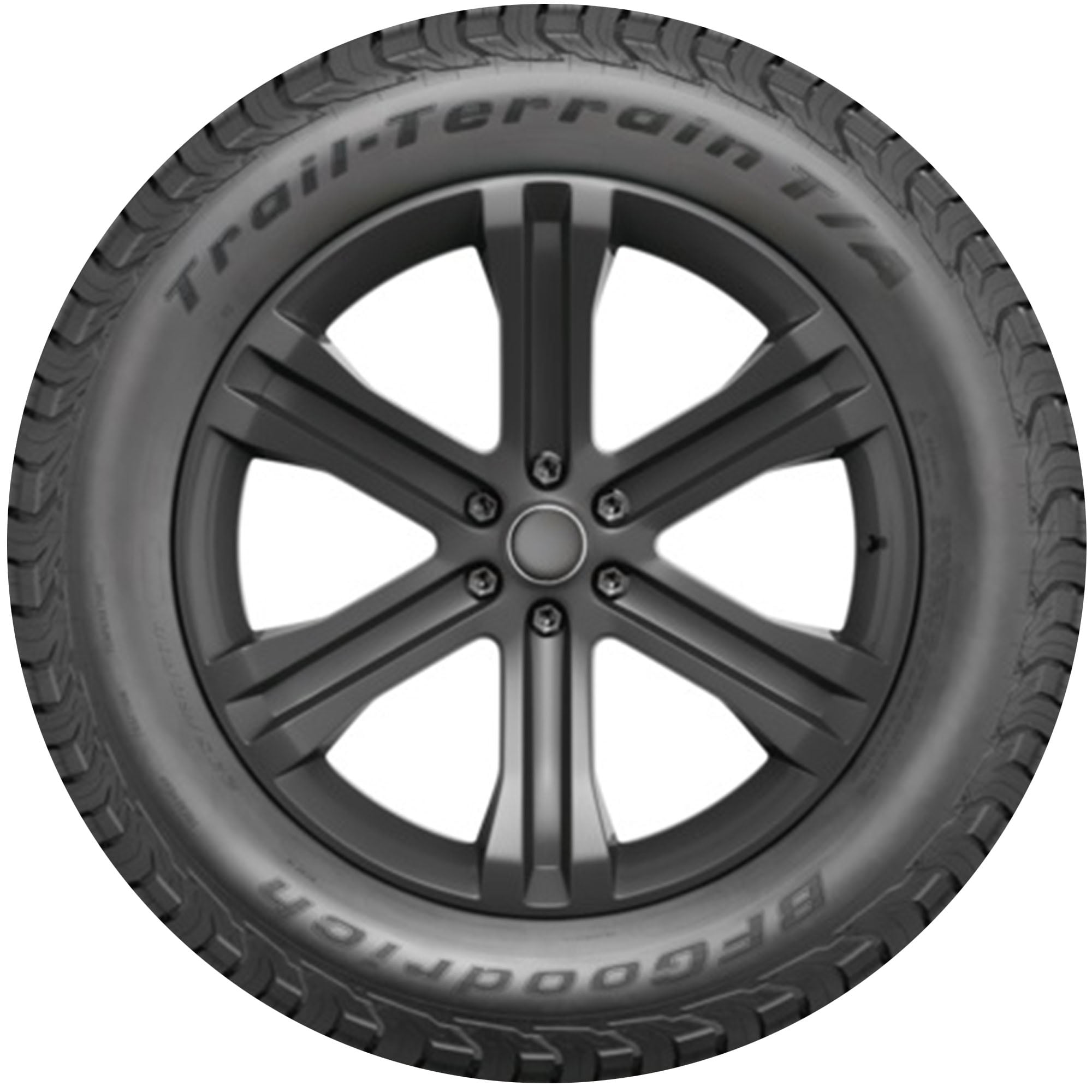 $223.59BFGoodrich Trail-Terrian T/A Tire BFGoodrich introduces the versatile and dependable BFGoodrich Trail-Terrain T/A tire. Road worthy and adventure ready, this rugged tire is durable enough for paved or unpaved roads. Built to last, the BFGoodrich Trail-Terrain T/A tire has an optimized footprint design featuring Full-Depth 3-D Locking Sipes that provide excellent tread block stability for even wear. As a result, you get a tire with longer tread life and a quiet, comfortable ride. Engineered so you can explore, the BFGoodrich Trail-Terrain T/A tire resists chipping and tearing in occasional gravel road usage. Plus, the serrated shoulder design makes it ideal for soft-soil traction in light off-pavement situations without compromising road noise. Don’t let adverse weather stand in your way either. The BFGoodrich Trail-Terrain T/A tire provides performance you can confidently rely upon, rain, snow or shine. The BFGoodrich Trail-Terrain T/A tire is backed by a 60,000-Mile Warranty and a 60-Day Satisfaction Guarantee, so you can be set for what’s next. Guarantee applies to up to 6 tires per customer. Guarantee applies only to tires that were purchased and mounted and does not apply to exchanged tires that were provided under this guarantee. The guarantee does not include the cost of valve stems. Tires that are damaged due to misuse or misapplication, road hazards, mechanical problems related to the vehicle, use in any racing-related activities, or competitive events, or tires that are removed from the original vehicle on which they were installed, are excluded from guarantee Based on a treadwear test using tires in size 265/70R17 115T on a 2020 Ford F150 4×4. Actual on-road results may vary. Excludes Original Equipment Tires Guarantee applies to up to 6 tires per customer. Guarantee applies only to tires that were purchased and mounted and does not apply to exchanged tires that were provided under this guarantee. The guarantee does not include the cost of valve stems. Tires that are damaged due to misuse or misapplication, road hazards, mechanical problems related to the vehicle, use in any racing-related activities, or competitive events, or tires that are removed from the original vehicle on which they were installed, are excluded from guarantee.