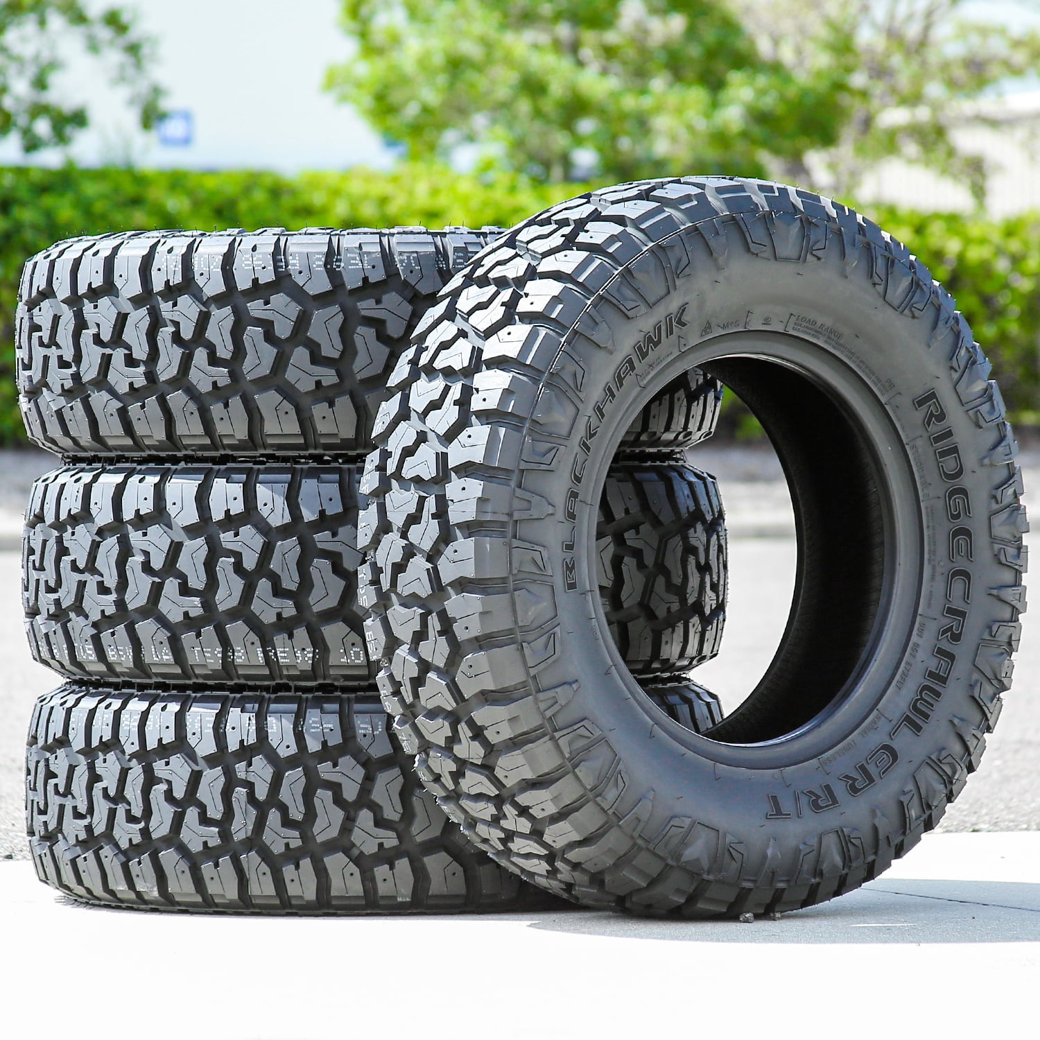 $174.30Blackhawk Ridgecrawler R/T OVERVIEW The Blackhawk Ridgecrawler R/T is a rugged terrain, all weather tire made for light trucks and SUVs. Blackhawk offers a 45,000 mile treadwear warranty with this model. The tire provides true year-round traction. The durable compound blend and the stable block placement work together in order to increase its dry, wet, and winter performance. These elements allow the tire to improve its rubber flexibility throughout the year, including in severe winter conditions. On the other hand, the tread firmly grips the road with extra biting edges, improving its performance. On-road hydroplaning is prevented with the optimized grooves that disperse water and slush from below the footprint. Exceptional off-road grip is guaranteed with this tire. Better traction is ensured with the optimized tread elements. Staggered tread blocks and a high void ratio work together to improve the tire’s soft, loose, and uneven terrain performance, enabling its consistent forward motion through deep mud. Additionally, the tire’s self-cleaning capability is guaranteed. Rocks are ejected to prevent stone retention, while mud and snow are dispersed from between the tread elements to keep consistent surface contact. The reinforced internal structure and the durable rubber compound upgrade the model’s load durability and damage resistance. The casing works together with the tread design and the compound to achieve this. The stronger construction does not deform under load and driving pressure, upgrading load capacity. On the other hand, these improvements enable the tire’s prevention of casing and tread damage. These elements enable the tire’s service life by avoiding various types of damage. The Blackhawk Ridgecrawler R/T offers a longer-lasting tread life. The ideal tread design evenly spreads out the driving pressure along the tread area, while the wear-resistant compound slows the treadwear rate down. This combination actively prevents irregular and premature wear formations. As a result, the even and reduced wear boosts the tire’s service life and usability. All weather tires receive the three mountain peak and snowflake (3PMS) symbol for their exceptional winter weather performance. They are all season tires with extra winter weather grip, in order to guarantee safer year-round durability. This ensures their true and secure driving ability throughout the year. Not all tire sizes are suitable for all vehicle types. Please refer to the item specifications for accurate information about vehicle type fitment for this particular size. Manufacturers recommend changing tires every 10 years. As long as tires are properly stored before they are sold, the year of their manufacture will not shorten their service life.