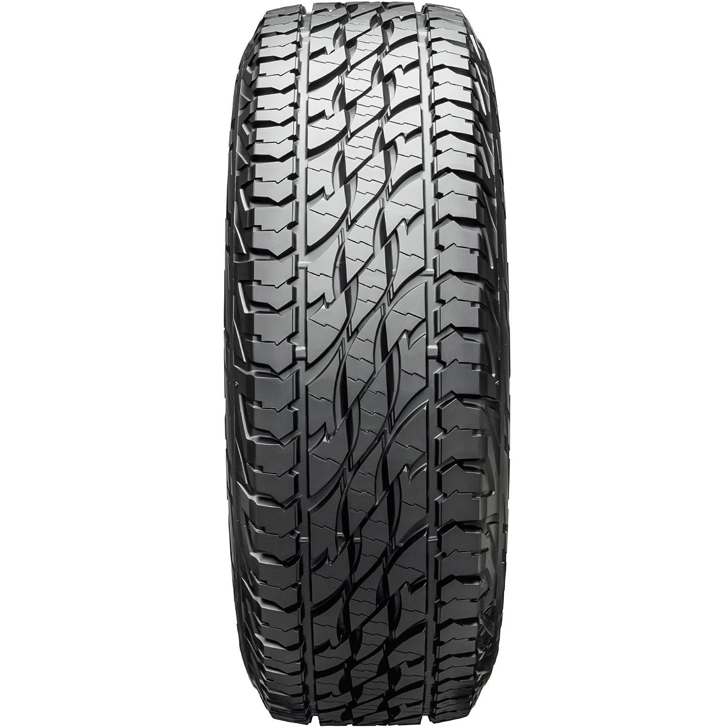 $278.63Bridgestone Dueler A/T Ascent OVERVIEW The Bridgestone Dueler A/T Ascent is an all terrain, all weather tire made for light trucks and SUVs. Bridgestone offers a 60,000 mile treadwear warranty with this model. The tire promotes exceptional on- and off-road traction. The staggered tread blocks, their stiffer tread area, the deeper tread, and the upper sidewall pattern work together to improve on- and off-road grip. In other words, these tread elements enable the tire to enhance forward motion throughout the performance. These elements allow the tire to upgrade deep mud and loose dirt traction, optimizing traction. These tread elements allow the tire to improve its self-cleaning capability. The footprint eliminates mud and snow from the footprint, while actively resisting stone retention from harming the tire’s footprint. During the tire’s on-road performance, it is able to provide great comfort levels. The tread’s siping and groove placement manage to reduce road noise levels heard in the vehicle’s cabin. These tread elements channel airwaves through the tire’s footprint, without allowing them to come into contact with the tread elements. As a result, road noise is not generated and they don’t reach the vehicle’s cabin during the tire’s performance. This results in a comfortable and quiet driving experience. The tire promotes secure all weather traction. The ideal tread design and the durable all weather compound enhance dry, wet, and winter-weather road grip. The optimized siping pattern and the ideally placed tread elements increase road grip with additional biting edges. The compound keeps its rubber flexible in various temperatures. As a result, the tire remains pliable from the heat of summer to colder winter conditions. Circumferential and angled lateral grooves prevent hydroplaning. They disperse water and slush from the footprint. The optimized tread elements and their constant contact with the driving surface upgrade controllability in all seasons. The tread design effectively increases its consistent surface contact, boosting steering responsiveness and driving stability. In other words, the tire manages to provide quick and precise steering responses to the driver’s commands. It also increases structural stability by strengthening the construction. The shoulder blocks provide biting edges, which enhance its cornering and maneuvering. The result is a secure driving experience. The Bridgestone Dueler A/T Ascent also upgrades load durability and damage resistance. Extreme terrain tires are known for their harsh terrain applications, which require better damage resistance. The tire combines its casing, tread design, and compound blend, which significantly boosts the tire’s prevention of casing and tread damage. As a result, punctures, cuts, impact damage, and the tread’s chipping, cracking, and tearing are avoided. The construction also helps improve the tire’s load capacity. Not all tire sizes are suitable for all vehicle types. Please refer to the item specifications for accurate information about vehicle type fitment for this particular size. Manufacturers recommend changing tires every 10 years. As long as tires are properly stored before they are sold, the year of their manufacture will not shorten their service life.