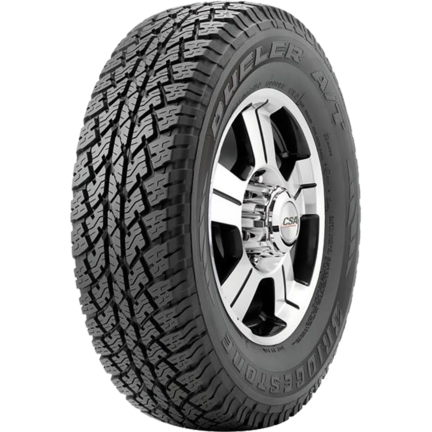 $217.47Bridgestone Dueler A/T 265/70R17 116S XL OVERVIEW For light trucks, SUVs and crossovers, the Bridgestone Dueler A/T offers the best of both worlds; reliable traction for light off-road use and great road manners, handling and ride on the highway. The Dueler A/T is designed with interlocking treads to deliver superior traction in mud or snow, a 2-in-1 tread lock design for stability and handling on pavement and a groove pattern to channel water away from the contact patch for wet traction.