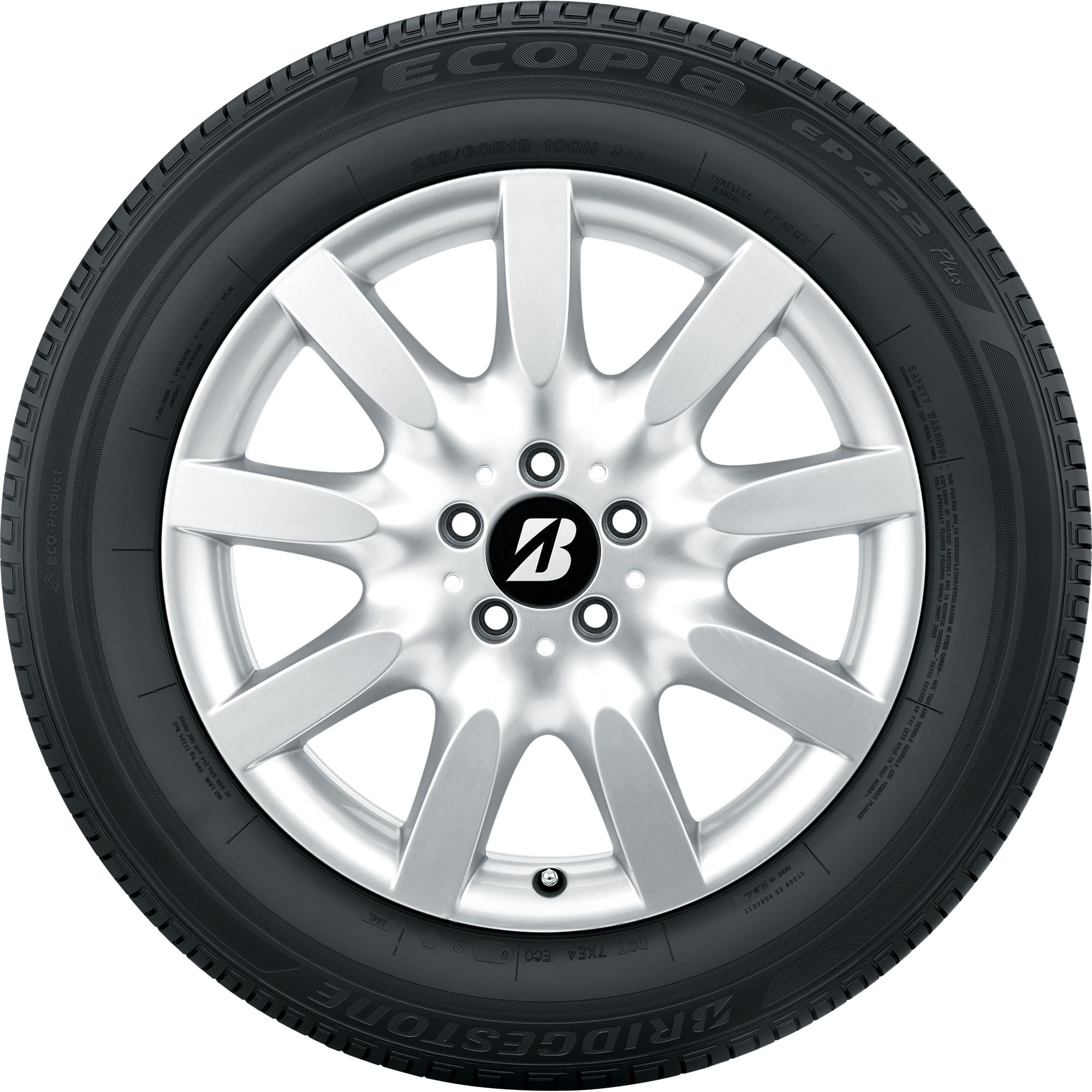 $159.95Bridgestone Ecopia EP422 Plus OVERVIEW The Bridgestone Ecopia H/L 422 Plus is a touring, all season tire manufactured for passenger and crossover vehicles. This model has some high performance sizes as well. Bridgestone offers a 70,000 mile treadwear warranty with this tire model. Bridgestone’s Ecopia tires are known for their fuel-efficient manufacture. They are made using the NanoPro Technology, which is a special tread compound that uses less energy to maintain the same performance of the tire. The compound reduces the rolling resistance of the tire, which in turn lessens the fuel consumption and the CO2 emissions of the vehicle. The tire is both economical and environmentally friendly. The all season tread pattern, with the added siping details, offers remarkable all weather traction in wet, dry and even winter weather. The tire’s light snow grip is also enhanced with the additional biting edges the extra sipes provide. The tire is resistant to hydroplaning as the circumferential tread grooves help disperse water from below the footprint. The tire’s performing capability is also first-rate. Its flat footprint and maximized road contact area ensure that its steering responsiveness is quick and precise. The tire responds swiftly to the commands of the driver and performs as desired. With the good steering responsiveness, the tire also provides good road feedback, making it safer to use. The reinforced structure of the tire also extends its life. The tire resists punctures and other damages, such as chipping, tearing and cracking, as its structure is reinforced. The stronger tire compound used in the manufacture also prevents irregular wear and it forces the tread to wear out evenly. As the tread is even for the tire’s entire lifetime, it is usable for a longer period of time. The Ecopia EP422 Plus’s tread pattern helps eliminate the road noise generated while the tires are in motion. The road noise heard in the cabin of the vehicle is decreased, making the driving experience more comfortable. Manufacturers recommend changing tires every 10 years. As long as tires are properly stored before they are sold, the year of their manufacture will not shorten their service life.