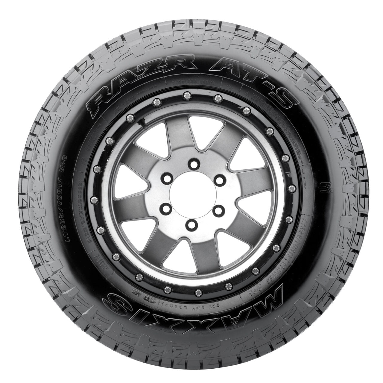 $149.56The Maxxis RAZR AT-S is an all-terrain tire designed for light-duty vehicles, offering a balance of rugged durability and smooth on-road performance. Whether navigating snowy, wet, or dry conditions, this tire ensures reliable traction and a comfortable ride. Engineered with next-generation tread optimization and compound technology, the RAZR AT-S delivers enhanced mileage, cut/chip resistance, and reduced road noise. Its robust sidewall design provides added protection for off-road adventures, while its Mountain Snowflake certification guarantees superior winter traction.