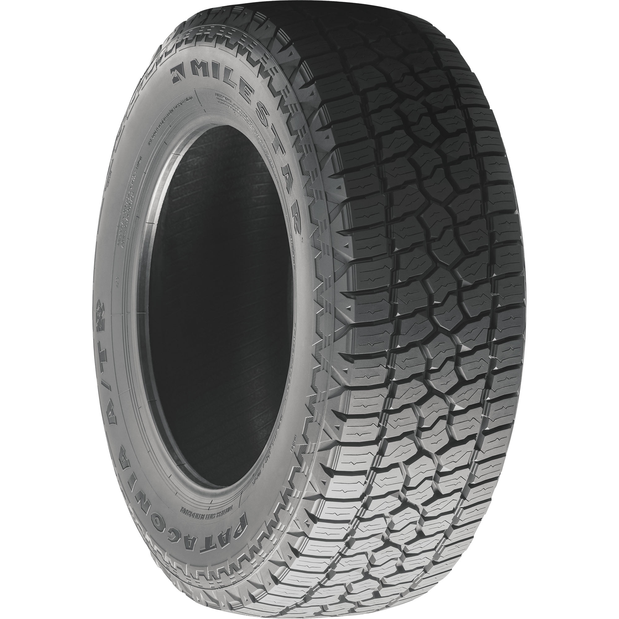 $167.66Milestar Patagonia A/T R LT275/70R18 125/122S E OVERVIEW Ideal for use on light trucks and SUVs, the Patagonia A/T R from Milestar is a rugged all-terrain tire that’s built to perform on- and off-road. Featuring a new tread pattern that allows for strong traction and performance on any terrains, the Patagonia A/T R’s offset tread blocks and open shoulder design improve all weather traction, while a cut and chip resistant rubber compound enhances durability for a longer tread life.
