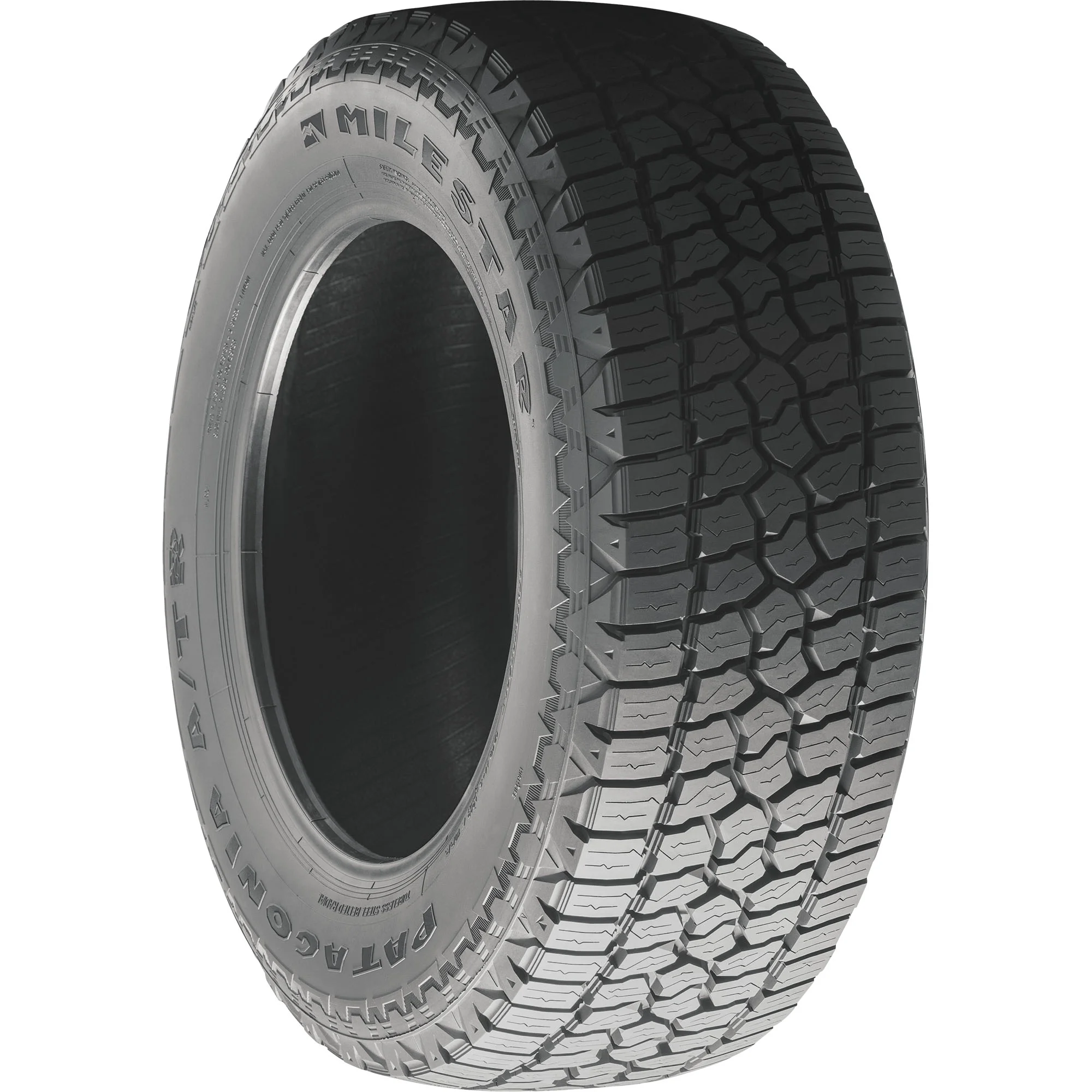 $184.89Milestar Patagonia A/T R OVERVIEW The Milestar Patagonia A/T R is a rugged terrain, all season tire manufactured for SUVs and light trucks. Milestar offers a 50,000 mile treadwear warranty with this tire model. The tire guarantees a secure rugged terrain performance. The staggered center and alternating shoulder tread blocks, the steeped grooves and the open shoulder design improve the tire’s grip on soft, loose and uneven terrain conditions. They enable the tire’s forward motion on various terrain surfaces to improve its rugged performing capability. As a result, the tire combines its on- and off-road driving security. The tread’s optimized elements also manage to maintain a clean footprint. They eliminate mud and snow and eject rocks stuck between the elements. This allows the tire to keep its contact with the terrain surface at all times, while also actively avoiding stone retention from harming the tire’s casing. This enables the tire’s safer off-road driving experience. The model also offers a lengthened tread life. The durable tire compound reduces the tread wear rate significantly with the wear-resistant rubber materials. This compound also avoids cuts, bruises and impact damage from harming the tread and casing and shortening the tire’s service life. The detailed siping pattern evenly distributes the driving pressure along the tread area. The equally spread out forces of acceleration, cornering and braking avoids the formation of irregular tread wear along the tread area, which upgrades the length of the tread life and the model’s usability. The tread design and the all season tire compound enhance the all weather traction. This enables the tire’s safe performance all year round. The compound’s durable rubber maintains its flexibility throughout the year, including in colder temperatures, and it keeps the tire pliable. The tread elements with the siping detain heighten the number of biting edges gripping the road surface, enabling the tire’s increased traction. The wide groove pattern and the open shoulder detail improve the on-road hydroplaning resistance. They channel water and slush from the tire and increase the wet and winter weather traction. The Patagonia A/T R is easily controlled on various terrain surfaces. The tread’s staggered and stepped block walls upgrade the grip and the tread stability. This enables the tire to maintain its constant road and terrain surface contact. The better contact with the surface improves the steering responsiveness and the driving stability. The steering becomes faster and more precise in its response to the driver’s commands, while the structure is stabilized against the driving pressure affecting the model. This enables the driver to confidently maneuver the vehicle on rugged terrain surfaces. Not all tire sizes are suitable for all vehicle types. Please refer to the item specifications for accurate information about vehicle type fitment for this particular size. Manufacturers recommend changing tires every 10 years. As long as tires are properly stored before they are sold, the year of their manufacture will not shorten their service life.