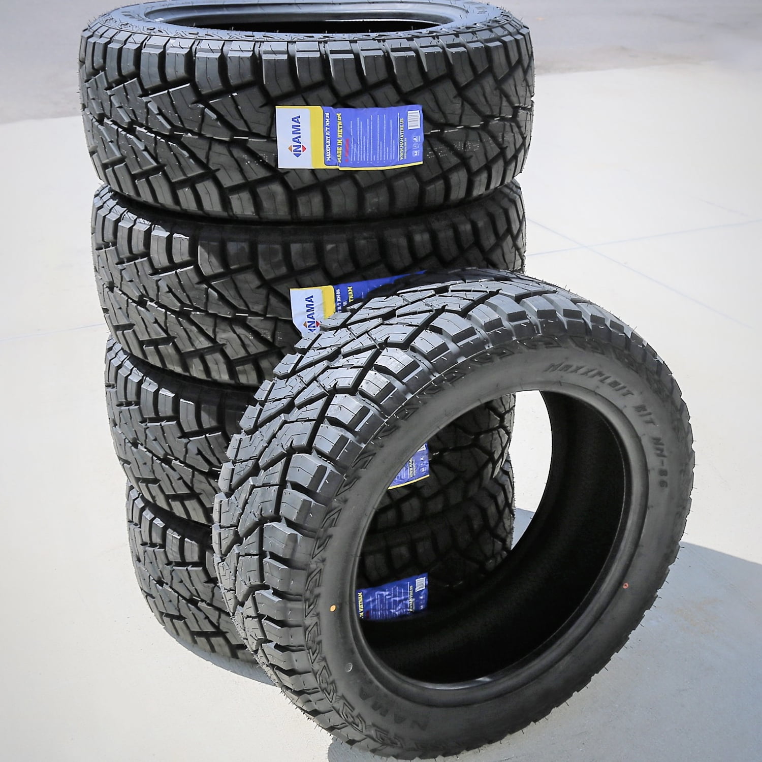 $194.94Nama Maxxploit R/T LT275/55R20 120/117R E OVERVIEW Nama’s Maxxploit R/T is a rugged terrain tire that’s built for use on light trucks and SUVs, and features an aggressive tread pattern that allows for solid traction and performance on- and off-road. Angled tread blocks and open shoulders promote self-cleaning for consistent traction and to protect the casing from damage, and the Maxxploit R/T’s reinforced construction increases durability while also boosting load carrying capacity.