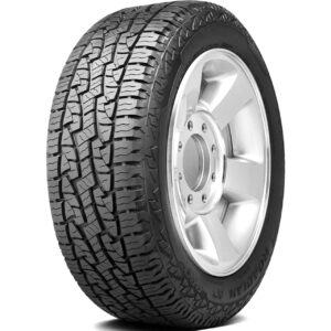 $260.58Nexen Roadian AT Pro RA8 OVERVIEW The Nexen Roadian AT Pro RA8 is an all terrain, all weather tire manufactured for SUVs and light trucks. Nexen offers a 50,000 mile treadwear warranty with the SUV (P-metric) sizes of this model. The tires pattern’s micro-grooves, or siping design, increase its wet, dry and winter weather traction both on- and off-road. The tire firmly grips the road in all of these conditions. The zigzag grooves and multi-kerf design prevent dangerous hydroplaning by dispersing water from below the tire footprint. The enhanced road gripping ability and hydroplaning resistance on all road surfaces improve the year round driving safety. The tread’s staggered center block and reinforced biting edges increase the all terrain traction. The tire is capable of conquering all soft, loose and uneven weather conditions. The model is capable of performing well both on- and off-road, making it perfect for drivers looking for versatility in their tires. The self-cleaning nature of the tread design maintains a clean footprint constantly for an enhanced road gripping ability. The tread grooves clean snow and mud and eject rocks stuck between the tread elements for an enhanced road gripping ability. The special tread design’s wider shoulder blocks improve the tire’s driving stability and steering responsiveness even in extreme conditions. The maintained road contact stabilizes the tire against the driving forces affecting it, while the steering responsiveness is more precise and quick to respond to the driver’s commands. This enhanced handling and controllability ensure safe driving in all weather conditions. While on road driving, the tire offers excellent comfort. The multi-sequence variable pitch tread pattern negates the road noise generated while the tire is in motion. It achieves this by creating a sound frequency that cancels out the road noise the moment it is generated. The result is a quiet and comfortable driving experience. The Roadian AT Pro RA8 offers a longer lasting usability and tread life with the prevention of uneven wear. The optimized tread pattern evenly distributes the driving pressure across the tread area and avoids irregular wear patterns from forming along the tread. The longer lasting even wear ensure the tire’s longevity. All weather tires receive the three mountain peak and snowflake (3PMS) symbol for their exceptional winter weather performance. They are all season tires with extra winter weather grip, in order to guarantee safer year-round durability. This ensures their true and secure driving ability throughout the year. Not all tire sizes are suitable for all vehicle types. Please refer to the item specifications for accurate information about vehicle type fitment for this particular size. Manufacturers recommend changing tires every 10 years. As long as tires are properly stored before they are sold, the year of their manufacture will not shorten their service life.
