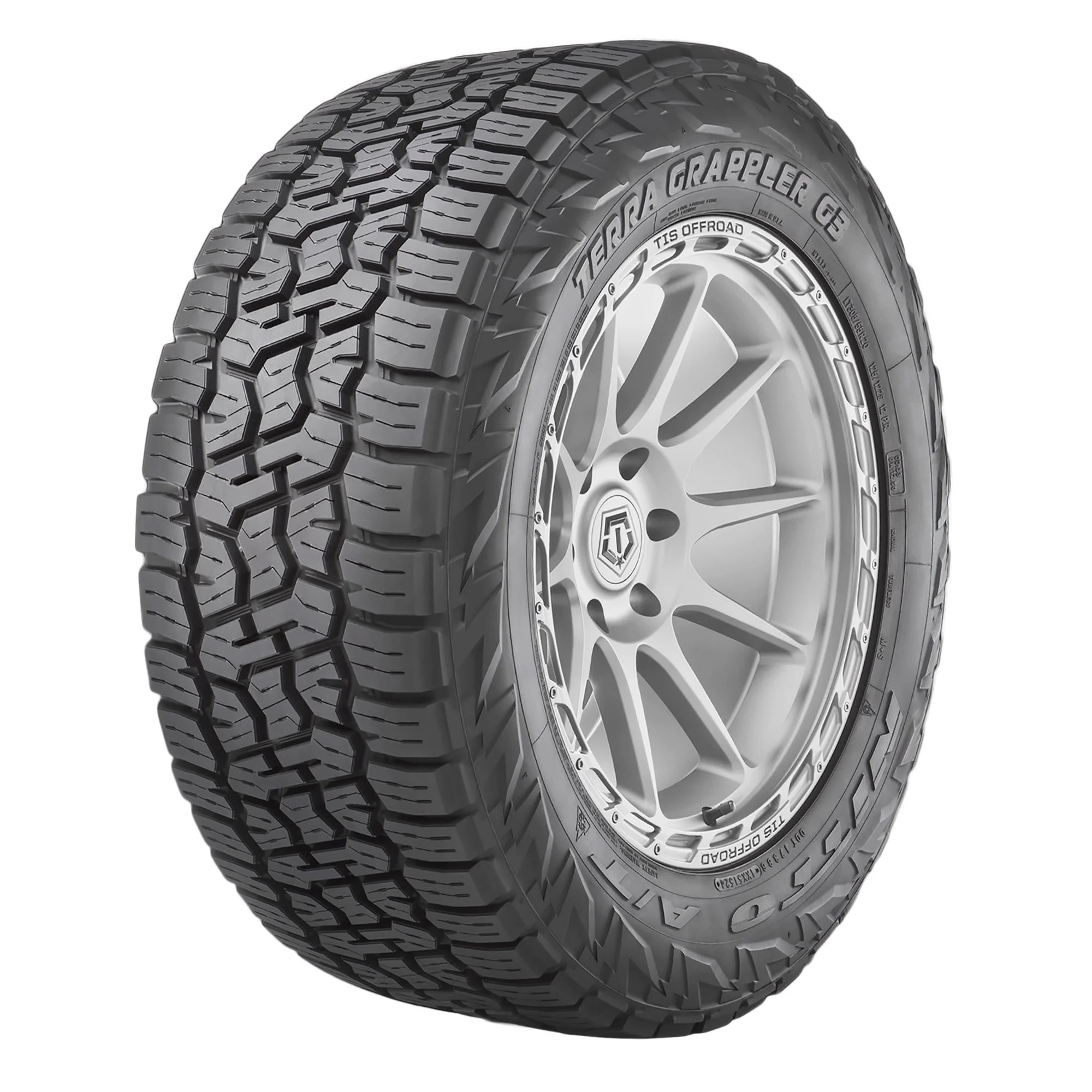 $257.99Nitto Terra Grappler G3 The Terra Grappler G3 is an all-terrain tire for light trucks and SUVs designed to deliver a comfortable and quiet ride on the highway with the capability to perform in off-road environments. Its tread pattern is engineered to provide year-round traction. Full-depth sipes maintain wet and snow performance throughout the life of the tire, while staggered shoulder lugs provide biting edges for traction on trails. An advanced tread compound provides stability and longevity. The variable pitch tread blocks reduce road noises, and the tire is constructed with a 3-ply sidewall for added strength and puncture resistance.
