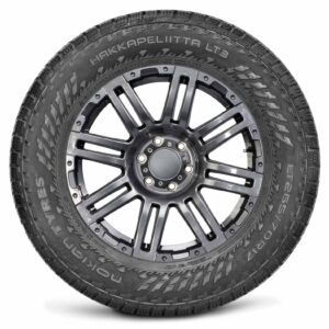 $224.02Nokian Tyres Hakkapeliitta LT3 OVERVIEW The Nokian Tyres Hakkapeliitta LT3 is a highway terrain, winter tire manufactured for light trucks. This model is made for electric vehicles. The tire upgrades the winter weather performance. The detailed directional tread design and the durable winter compound boost the winter weather, ice and snow traction. The durable compound elements optimize the rubber flexibility in freezing temperatures, ensuring a secure cold weather performance. The zigzag groove pattern allows the tire to firmly grip the road surface with extra biting edges, increasing the ice and snow traction. The footprint is pinned for studs which can further boost the ice and snow traction. The angled lateral grooves prevent hydroplaning by dispersing water and slush from the footprint, effectively upgrading the wet weather driving safety levels. The tire features tread wear indicators on the center rib. The tread wear indicators show the tread wear rate in percentages. The tread shows the tread life left on the tire in percentages and these numbers wear out along with the tread. As a result, the driver can easily follow the treadwear across the tread area, enabling the tire to promote a safer driving experience. The ideal tread design with the continuous center rib maintains the surface contact at all times. It enables the tire to improve the steering responsiveness and the driving stability. As a result, the tire is quicker and more precise in its response to the driver’s commands, while the structure is secured against the driving pressure. The shoulder block pattern with the siping placement firmly grips the road surface with extra biting edges, optimizing the cornering capability. The siping pattern also improves the braking ability. The sipes generate friction between the tire and the road surface, greatly shortening the braking distance. This combination guarantees the driver’s better control over the vehicle. The Nokian Tyres Hakkapeliitta LT3 features special Aramid sidewalls, which upgrade the driving durability. These sidewalls protect the tire from external damage, while promoting a secure driving safety. These tread elements improve the overall driving safety levels at all times. Nokian’s studdable winter tires require special studs. Therefore, tire shops will not be able to install studs into Nokian tires in the US. Manufacturers recommend changing tires every 10 years. As long as tires are properly stored before they are sold, the year of their manufacture will not shorten their service life.