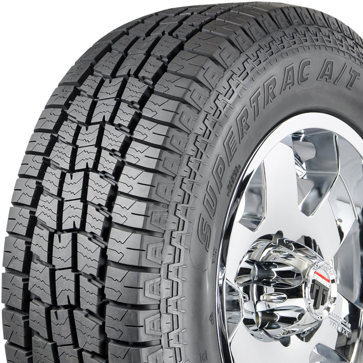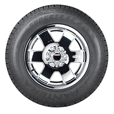 $149.32Pantera Supertrac A/T LT275/70R18 125S E OVERVIEW The Pantera Supertrac A/T is an all-terrain tire that’s meant for use on light trucks and SUVs and is versatile enough to performance on the trail, beach, and everything in between. A five-pattern-block tread design expels water to reduce the risk of hydroplaning, and the Supertrac A/T’s zigzag middle block promotes self-cleaning for consistent traction off-road. An optimized design enhances stability and ride comfort, and the Supertrac A/T’s bench-shaped shoulders increase grip to further improve stability and cornering performance.