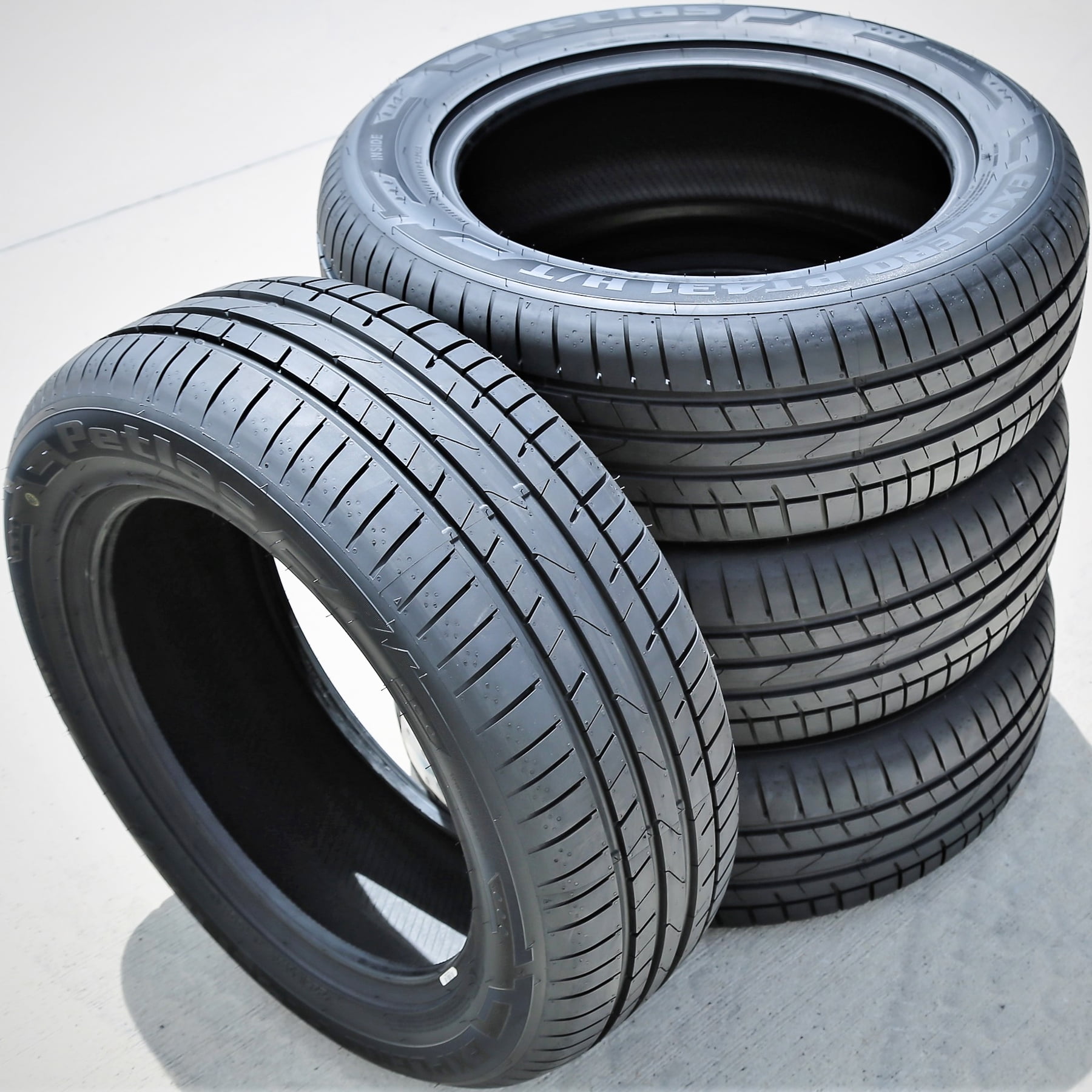 $88.34Petlas Explero PT431 H/T OVERVIEW The Petlas Explero PT431 H/T is a performance and high performance, summer tire manufactured for passenger vehicles and SUVs. Summer weather traction is guaranteed. The summer compound and the asymmetric tread design greatly improve the dry and wet weather grip. Heat-resistant rubber materials are used in the summer compound in order to optimize its warm temperature application. The asymmetric tread design ensures the surface contact which improves the grip on the road surface with the better road-to-rubber ratio. The model features three wide and one narrow circumferential grooves that prevent hydroplaning as they disperse water from below the footprint. The asymmetric tread design utilizes its versatile elements to optimize the controllability. The solid center ribs maintain the surface contact at all times, enhancing the steering responsiveness and driving stability. In this manner, the tire promotes a faster and accurate steering response, while the structure is secured against the driving pressure. The outer shoulder detail with the special canal placement, and the ideal tread elements increase the cornering and braking powers. They enhance the grip on the road surface, boosting the cornering ability and shortening the braking distance. High speed performing ability is also guaranteed. The tire manages to combine the tread design, the durable compound, and the stronger internal structure in order to enhance the high speed durability. The tread design’s surface contact and the special heat-resistant compound elements allow the tire to ease the pressure off the tread, avoiding heat build-up. The structural durability enables the tire to keep the ideal tire shape under the high speed pressure. This results in the tire’s exceptional performing power, significantly boosting the high speed capability. The Explero PT431 H/T improves the comfort levels. The special computer-designed tread block placement enables the tire to reduce the road noise heard by the passengers. The tread design enables the tire to significantly decrease the road noise levels reaching the vehicle’s cabin. This combination ensures a quiet driving experience by ensuring the passengers’ driving enjoyment. Manufacturers recommend changing tires every 10 years. As long as tires are properly stored before they are sold, the year of their manufacture will not shorten their service life.