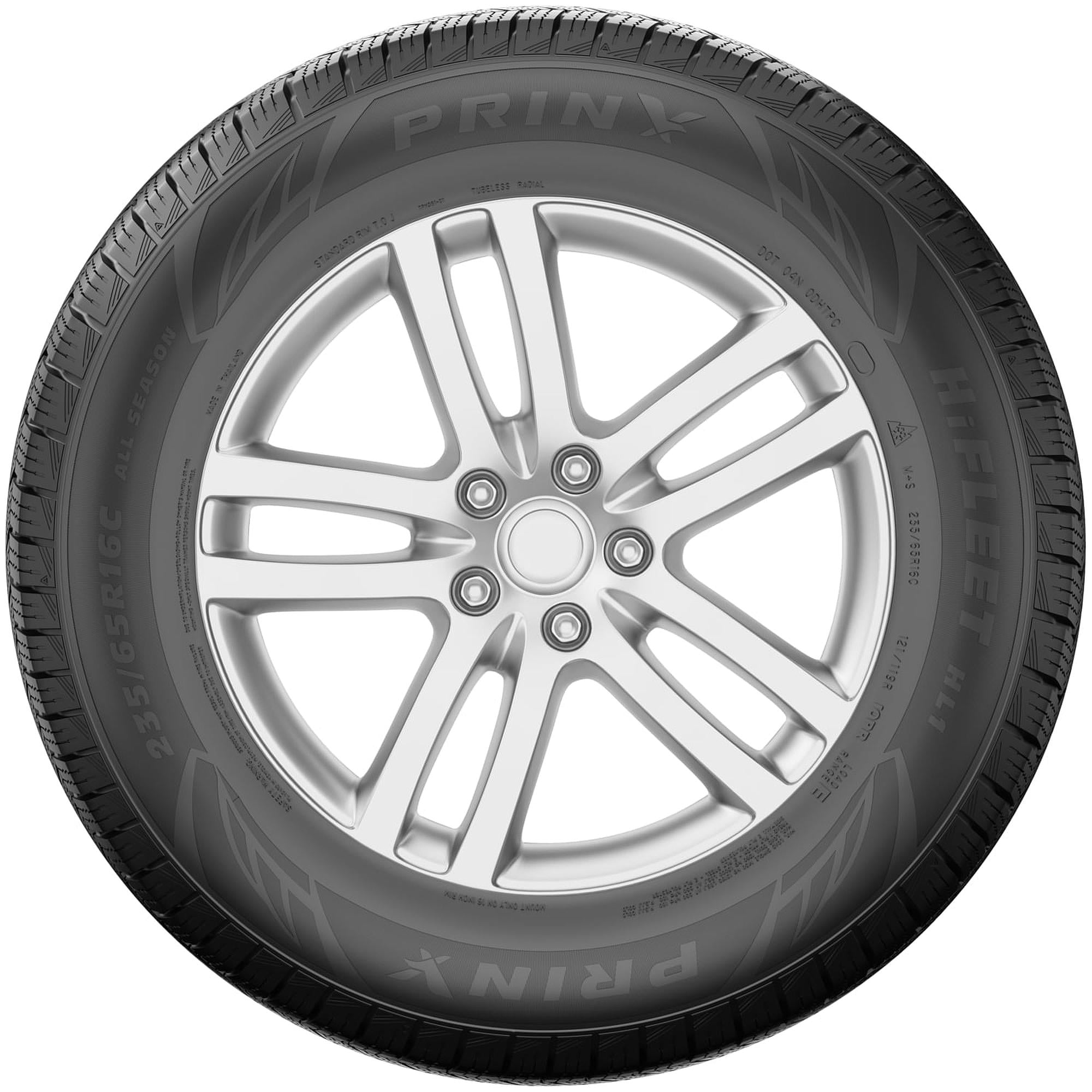 $163.39Prinx HiFleet HL1 OVERVIEW The Prinx HiFleet HL1 is a highway terrain, all weather tire manufactured for commercial vans and light trucks. The advanced compound enables the tire to be flexible and drivable year-round. The detailed siping across the tire offers strong winter traction. The circumferential grooves help drain slush and water from underneath the footprint. This establishes good road contact and lowers the chance of hydroplaning. Furthermore, the tread is optimized to provide good dry performance as well. The ribbed design creates continual road contact, boosting controllability. The tie-bars connect the blocky ribs, stabilizing the footprint and ensuring increased driving stability. As such, the ribs allow the model to be very responsive to the driver’s steering instructions. The tie-bars also reduce tread flexing while braking. Moreover, the detailed siping on the shoulder blocks guarantees excellent cornering with their numerous biting edges. This gives the model safe and reliable maneuvering, even in winter conditions. The model sports a sturdy construction. The belted reinforcements lessen the possibility of punctures. The strong radial construction helps equally spread out pressure along the tire’s circumference. This stops pressure accumulation and minimizes flexing. The thicker under-tread also reduces tread flexing and lowers heat build-up. As a result, the model is strong enough to withstand greater loads with ease and prevent blowouts. In addition, the reinforced sidewall protects the tire from curb damage. The Prinx HiFleet HL1 features a longer tread life. The tie-bars, the thicker under-tread, and the continual road contact avert deformation. The stronger construction preserves the tire’s shape. When combined, these elements upgrade the model’s resistance to irregular wear. The unique compound enhances protection against cuts and tread chipping, improving damage resistance. This makes sure the tire’s service life is longer lasting. All weather tires receive the three mountain peak and snowflake (3PMS) symbol for their exceptional winter weather performance. They are all season tires with extra winter weather grip, in order to guarantee safer year-round durability. This ensures their true and secure driving ability throughout the year. Not all tire sizes are suitable for all vehicle types. Please refer to the item specifications for accurate information about vehicle type fitment for this particular size. Manufacturers recommend changing tires every 10 years. As long as tires are properly stored before they are sold, the year of their manufacture will not shorten their service life.