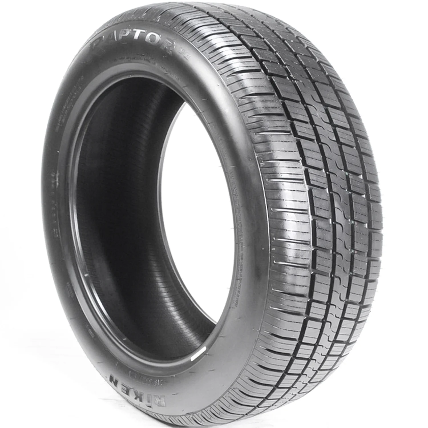 $153.07Riken Raptor VR OVERVIEW The Riken Raptor VR is a touring, all season tire manufactured for passenger vehicles and SUVs. The model promotes exceptional controllability thanks to its stable footprint. The stable block placement maintains surface contact at all times, increasing its steering responsiveness and driving stability. This promotes quick and precise steering responses to the driver’s commands, while the structure is secured against driving pressure. The shoulder block placement enhances cornering and maneuvering, providing additional biting edges throughout the drive. This results in a secure performance as the driver has full control over the vehicle at all times. The computer-optimized tread design helps enhance the tire’s comfort levels. These tread elements allow the tire to effectively lower road noise levels heard in the vehicle’s cabin. This is achieved by preventing sound wave formations. The computer-designed pattern channels airwaves through the footprint, without allowing their contact with the tread elements. As road disturbances do not reach the vehicle’s cabin, the tire promotes a quiet driving experience. Great all season traction is offered with this model. It combines the all season compound and the detailed tread elements in order to ensure dry, wet, and winter grip. Stronger rubber materials keep the tire pliable in changing temperatures, while the tread elements provide extra biting edges for better road grip. The circumferential grooves prevent hydroplaning in wet conditions, resisting hydroplaning in wet conditions. The Riken Raptor VR ensures lengthened usability. The stable footprint and the durable compound blend work together to upgrade the tire’s tread life length. Durable rubber materials significantly decrease the treadwear rate by utilizing wear-resistant elements. On the other hand, the stable tread elements ensure even pressure circulation, resisting irregular wear. This combination greatly upgrades the tire’s service life. Manufacturers recommend changing tires every 10 years. As long as tires are properly stored before they are sold, the year of their manufacture will not shorten their service life.